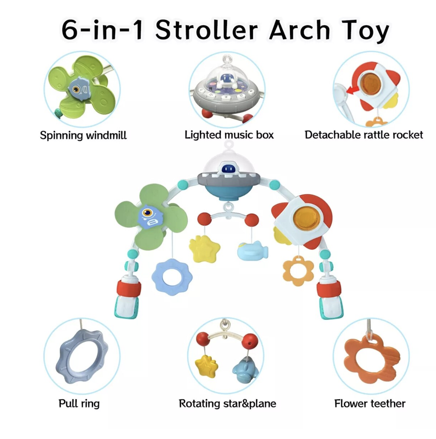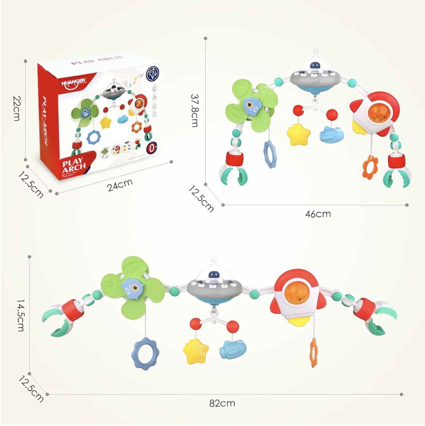 Transforma plimbarile si momentele de relaxare ale bebelusului intr-o experienta distractiva si educativa! Arcada Play Arch este un accesoriu interactiv, perfect pentru carucior, patut, scaun auto sau tarc, conceput special pentru a stimula simturile si dezvoltarea motorie a celor mici inca de la nastere. Cu jucarii suspendate in culori vii si un design practic, arcada aduce bucurie si invatare oriunde te-ai afla.