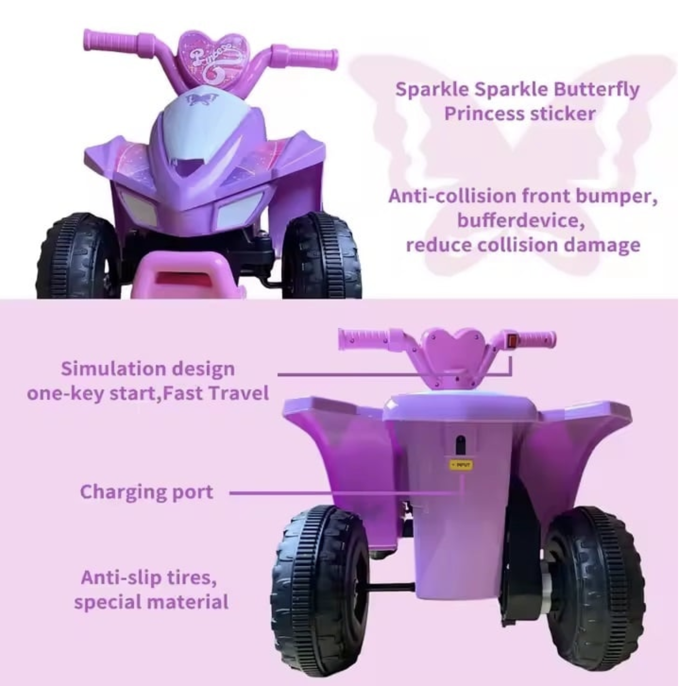 ATV-ul electric pentru copii este conceput pentru cei mici de la 2 ani+, oferind o experienta de joaca distractiva si usor de controlat. Echipat cu motor de 25W si baterie 6V 4AH, vehiculul este potrivit pentru plimbari pe suprafete netede din curte, parc sau alei. Designul compact si stabil il face usor de manevrat, iar constructia din plastic rezistent contribuie la o utilizare practica si confortabila. Disponibil in variantele de culoare roz sau rosu-albastru, ATV-ul este o alegere atractiva pentru joaca activa in aer liber.