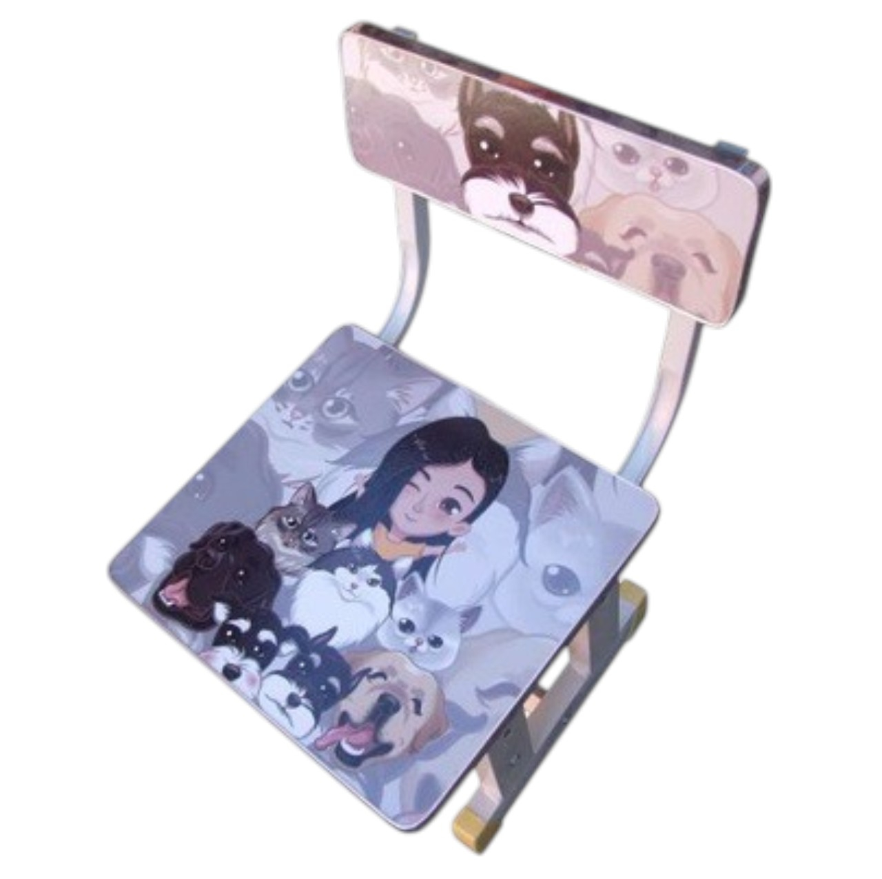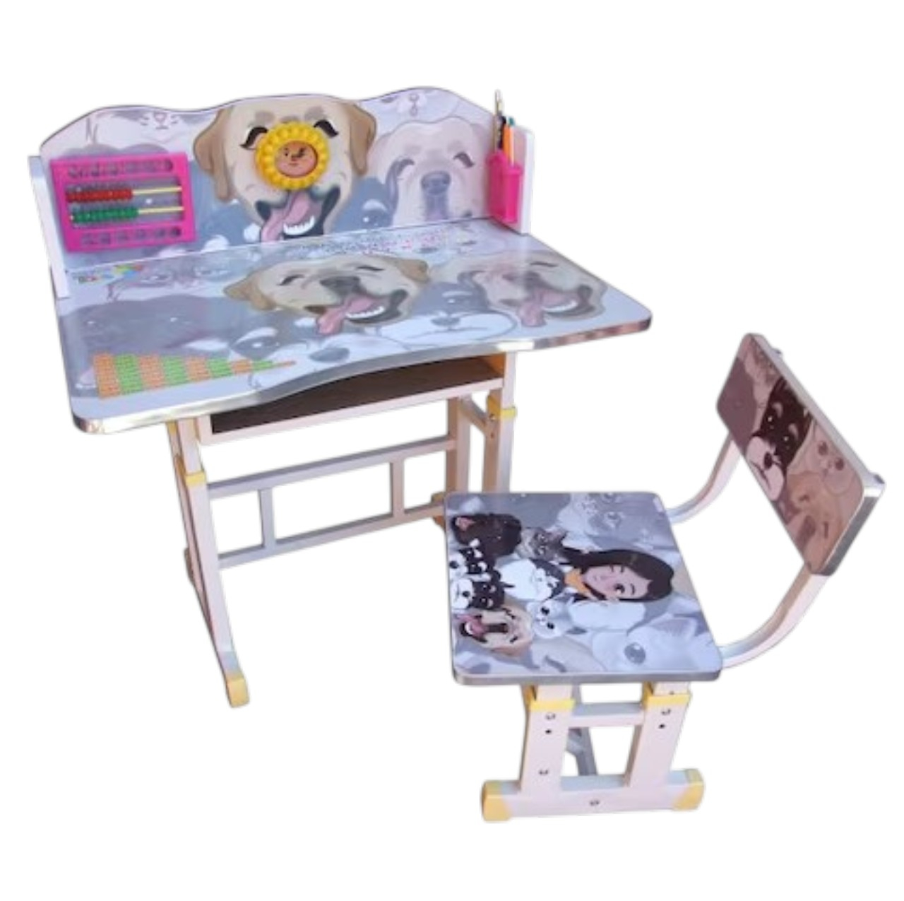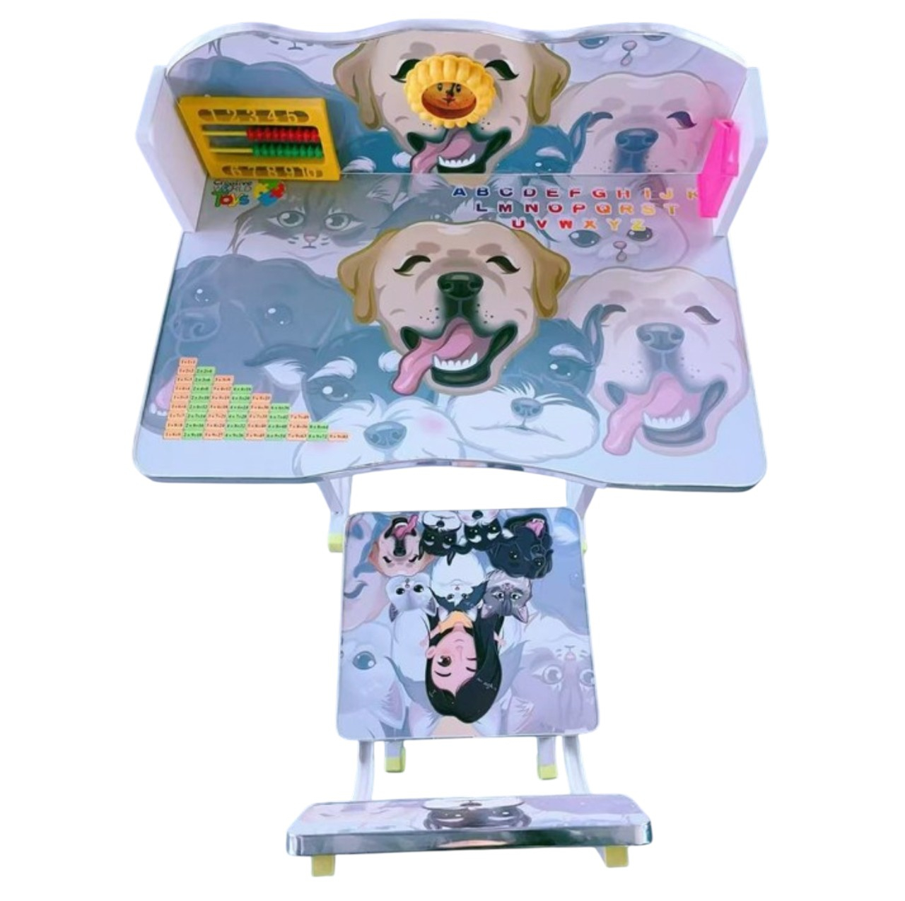 Birou cu scaun pentru copii, reglabile, cadru metalic si MDF, Catei si Pisici C3