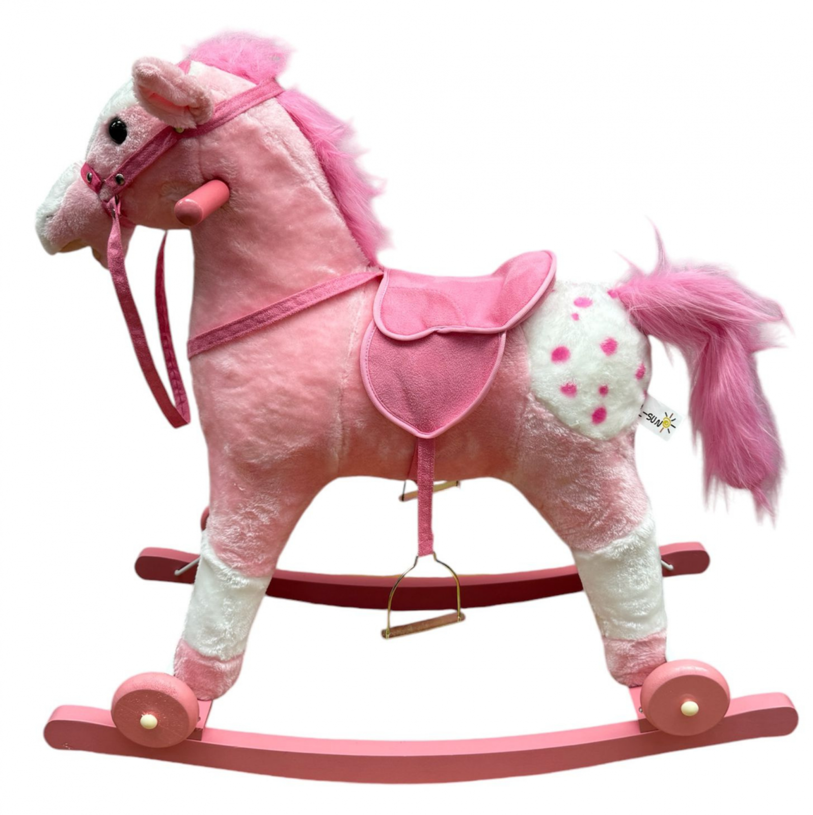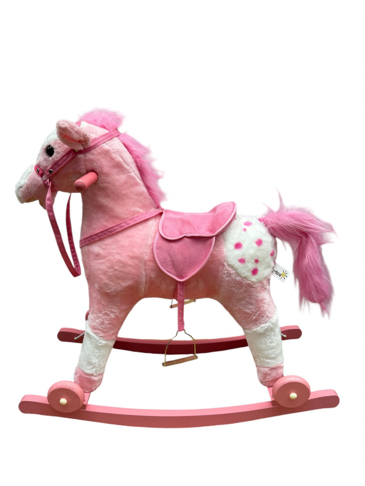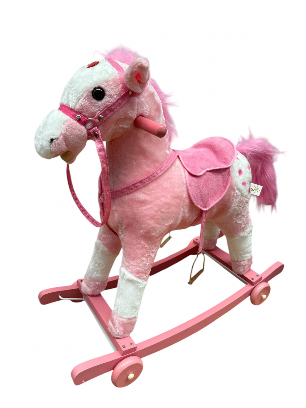 Calut care da din coada, din botic si necheaza atunci cand este apasat pe urechiuse, balansoar, din plus cu talpi si roti din lemn si cadru metalic, pentru copii, se balanseaza datorita miscarii inainte-inapoi a copilului, pe cele doua baze atasate, este dotat cu 2 manere de sprijin.Varsta recomandata: 1 - 3 ani.