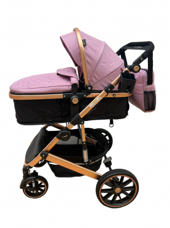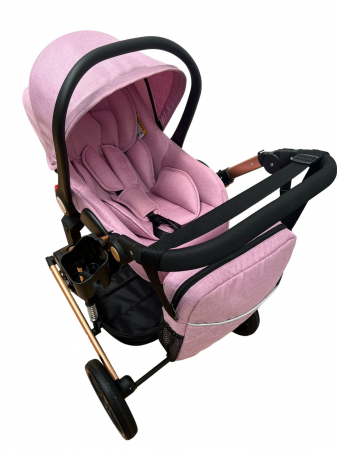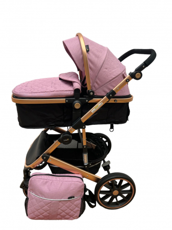 Carucior T4, 3 in 1, cu suspensii, transformabil landou-sport, roz/negru