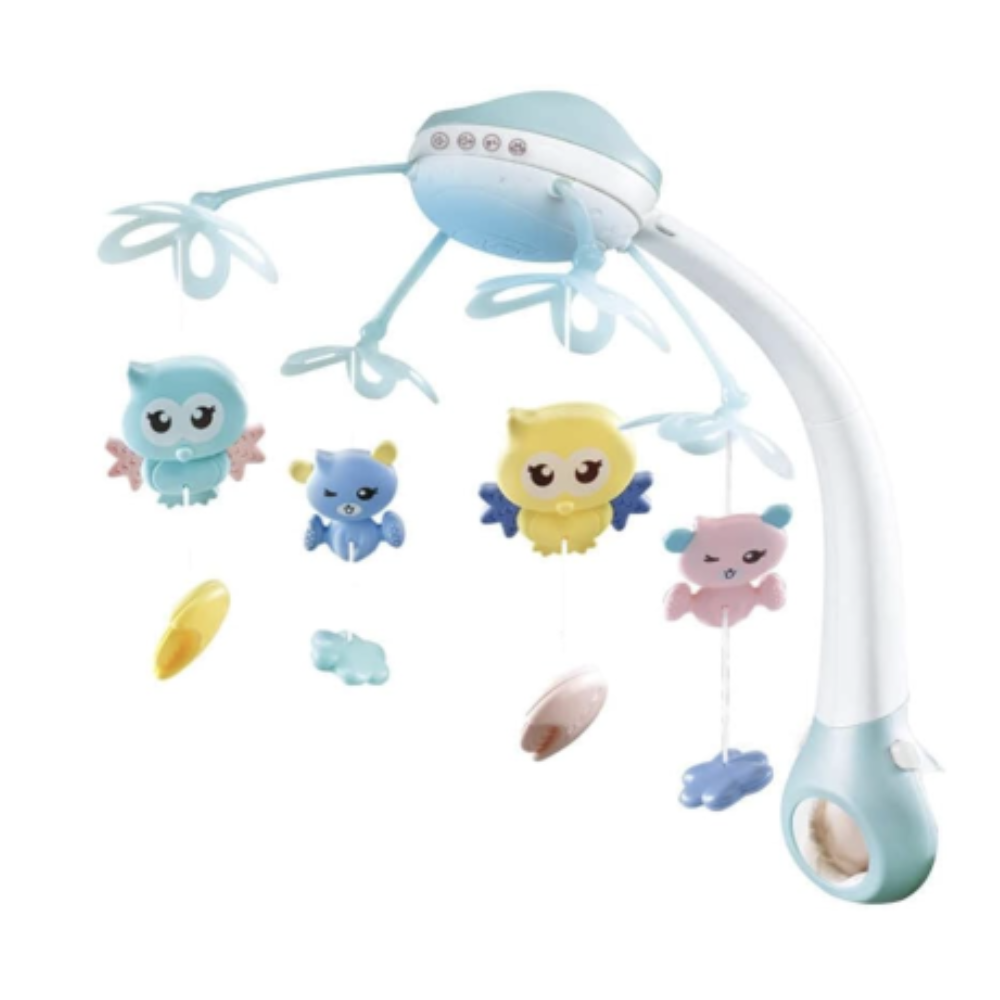 Carusel cu 516 sunete, telecomanda si proiectii Bufnita Inteleapta - bleu pastel
