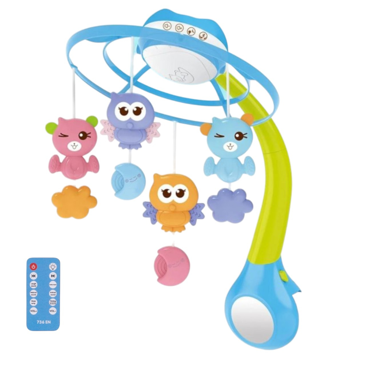 Transforma fiecare moment de somn intr-o experienta magica si linistitoare cu Caruselul Muzical cu Proiectii si Telecomanda. Conceput pentru a calma si relaxa bebelusul, acest carusel combina proiectii luminoase delicate, melodii blande si jucarii colorate care se rotesc usor, stimuland simturile si atentia copilului.