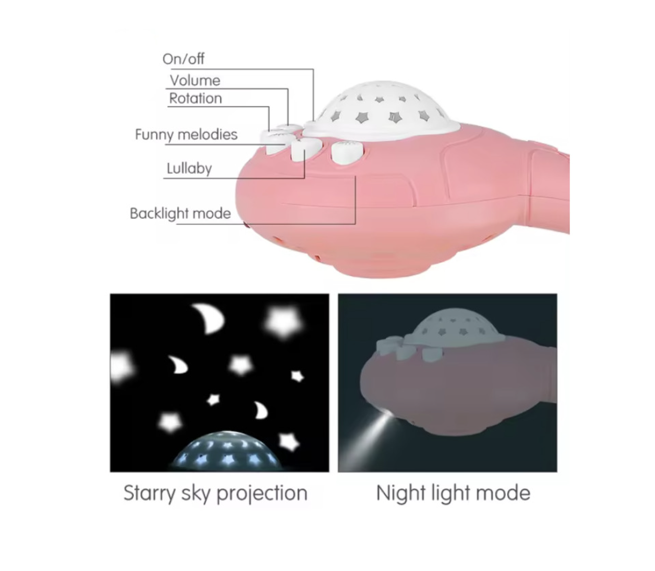 Proiectie stelute cu 3 moduri – transforma plafonul intr-un cer instelat, captand atentia bebelusului si inducand o stare de calm si siguranta