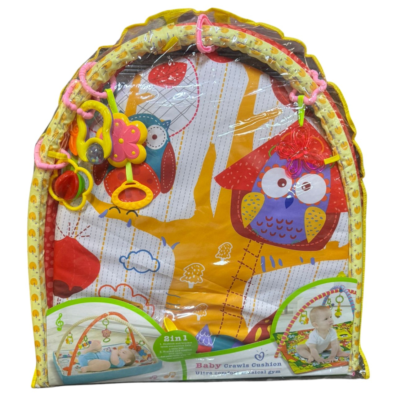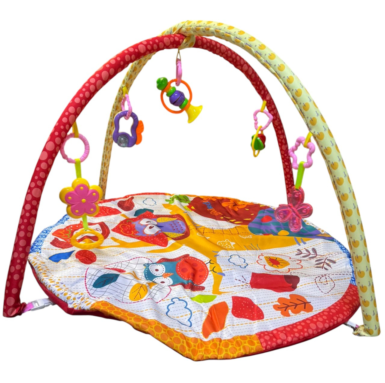 Centru de activitati bebelusi, saltea rotunda cu arcada cu jucarii, Copacul cu Bufnite