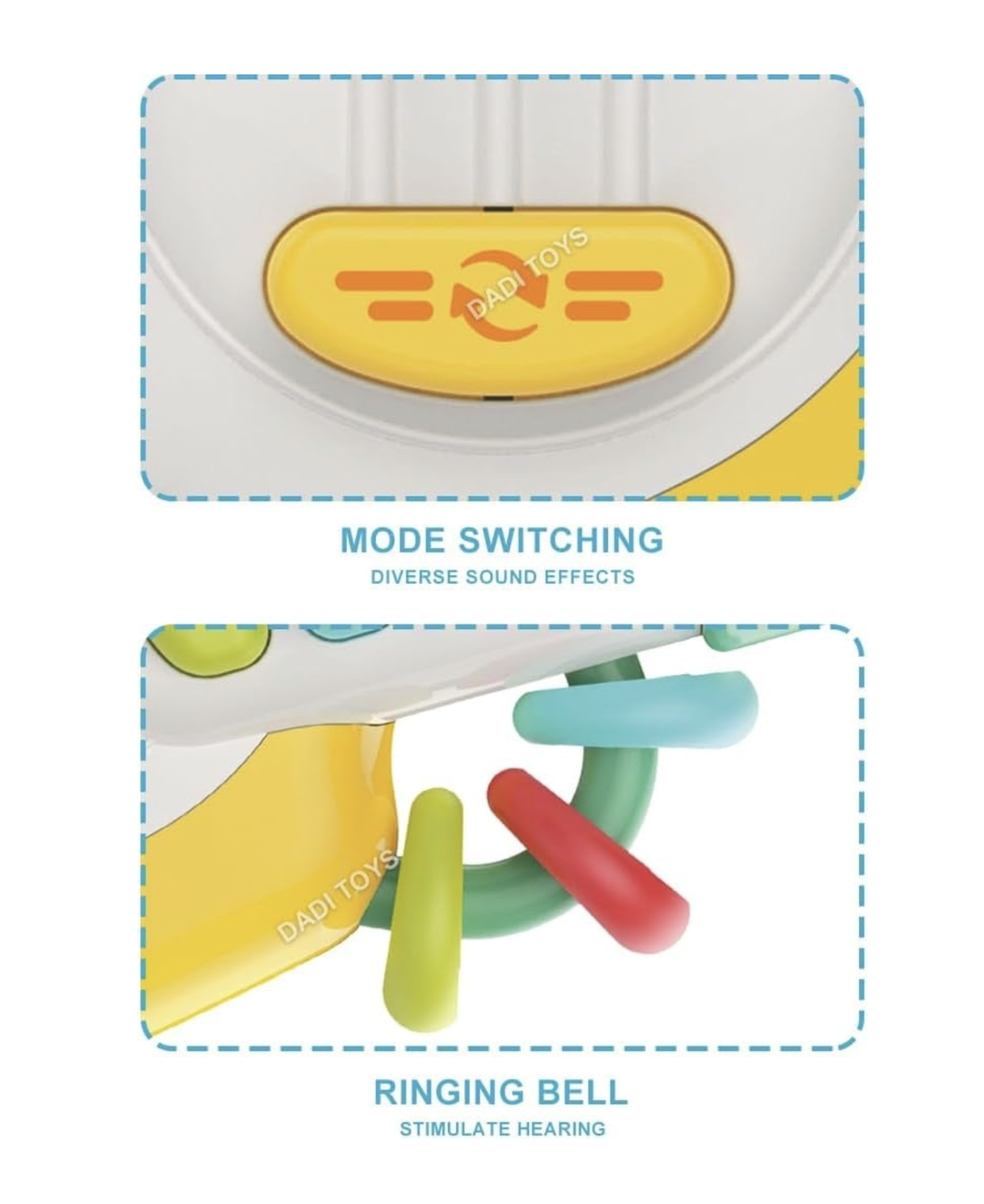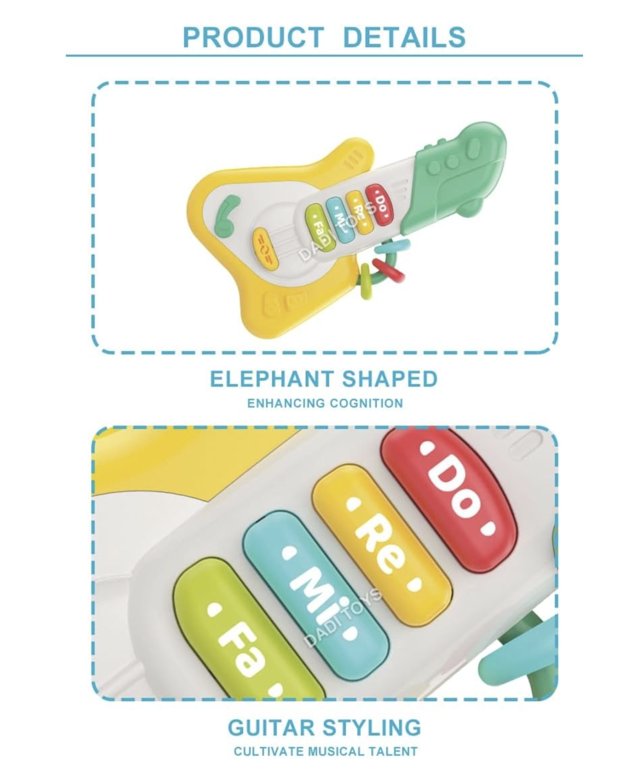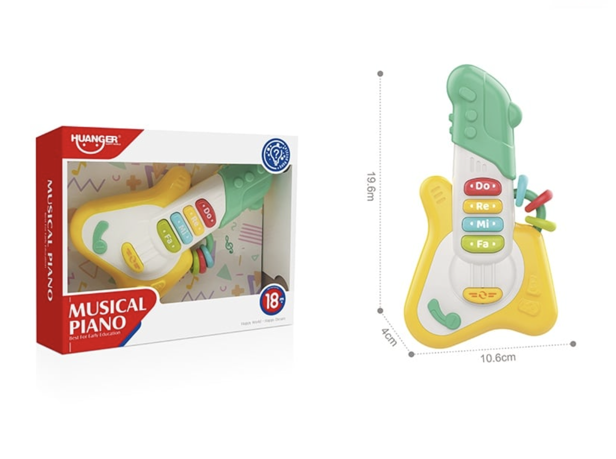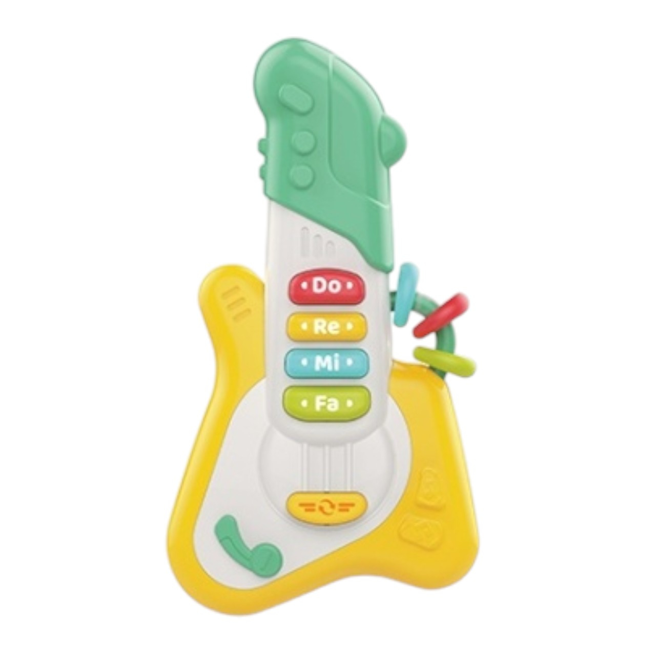 O prima experienta muzicala plina de veselie pentru cei mici! Chitara muzicala interactiva este special conceputa pentru a introduce bebelusii in lumea sunetelor si a ritmului. Cu lumini vibrante, melodii atractive si elemente zornaitoare, aceasta jucarie ii incurajeaza pe copii sa exploreze, sa se miste si sa se distreze in timp ce invata.