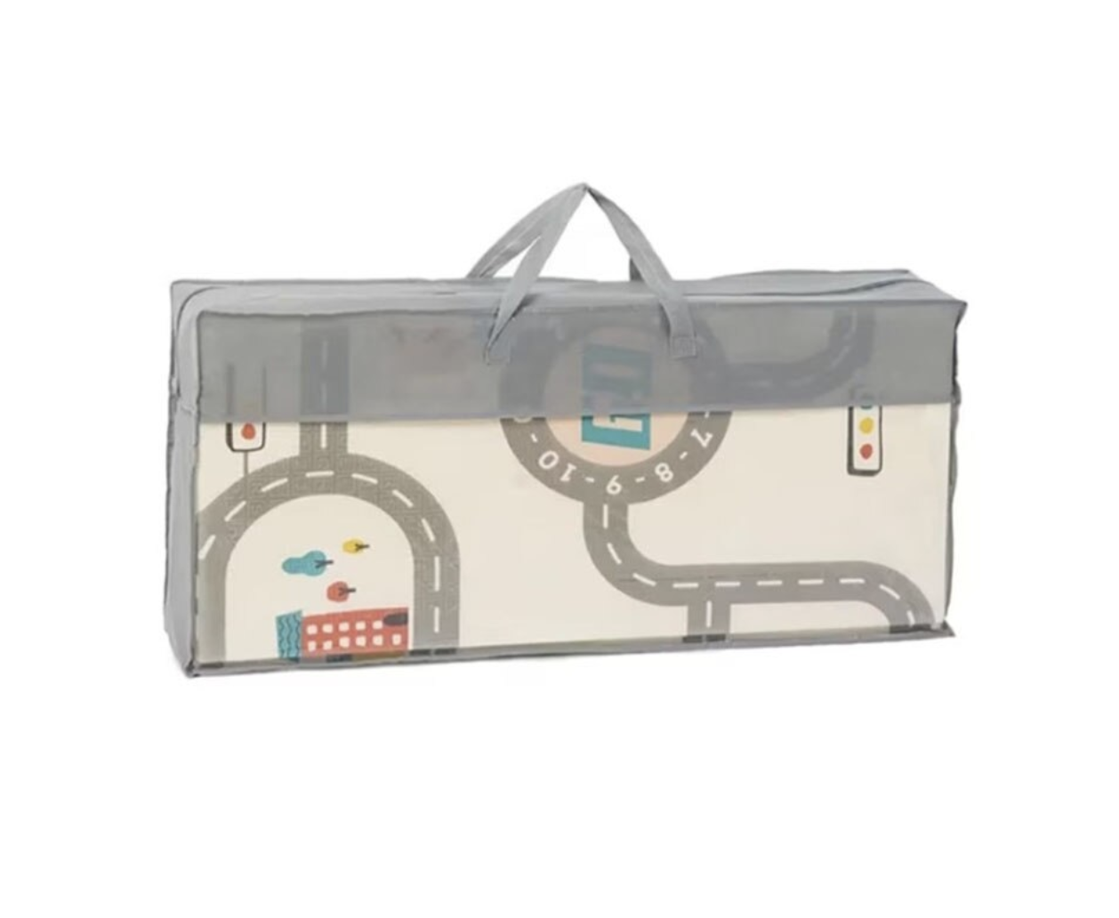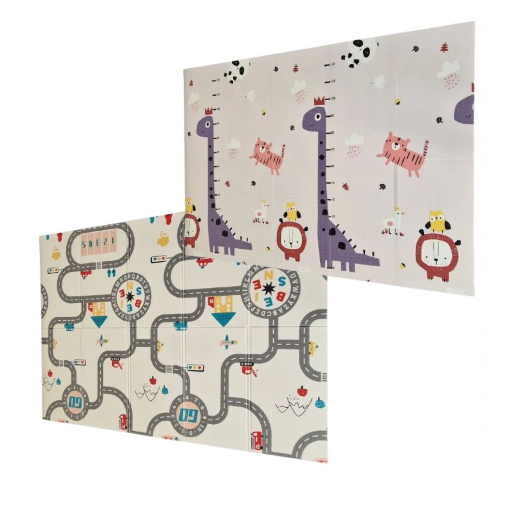 Covor bebe pliabil, gros, termoizolant, cu 2 fete, Circuit Trafic si Dinozauri, 200 x 180 x 1 cm
