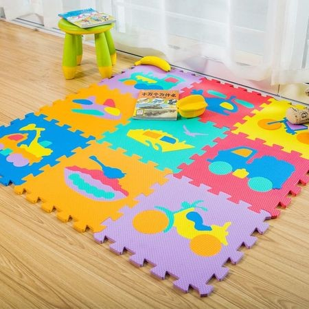 Puzzle din burete tip covoras, ce contine 9 bucati de 30x30 cm fiecare, cu care se pot construi cuburi, covorase, sotron etc. Setul include mijloace de transport decupate. Varsta recomandata: 3 ani +