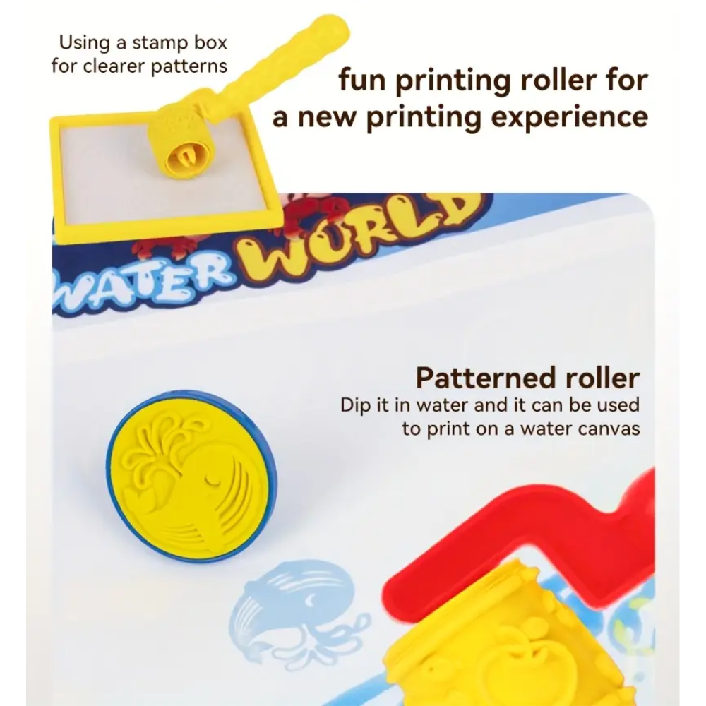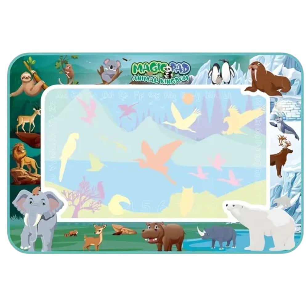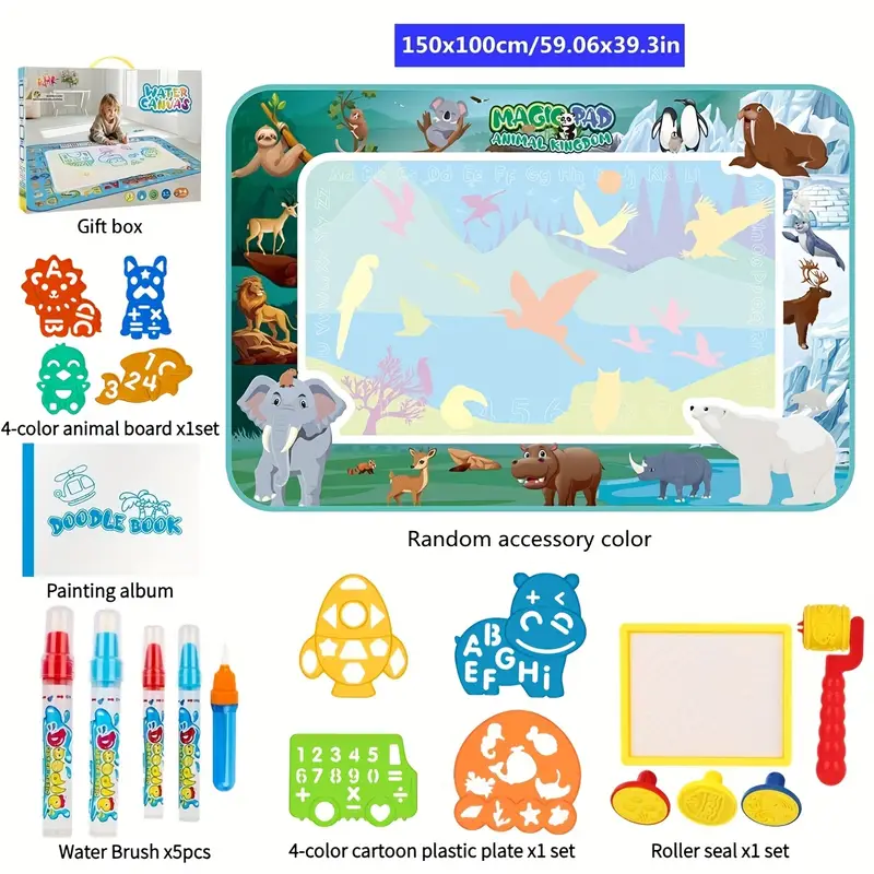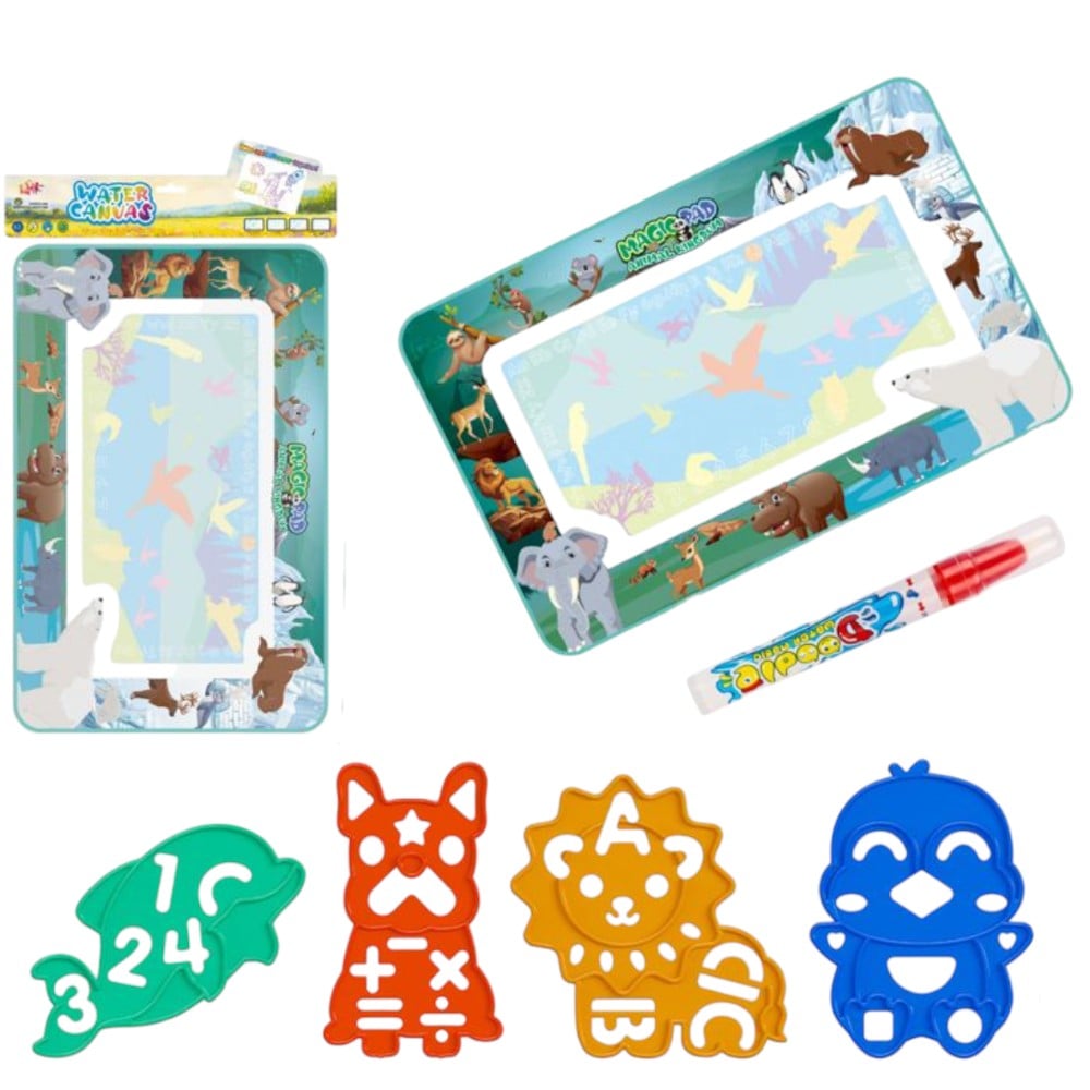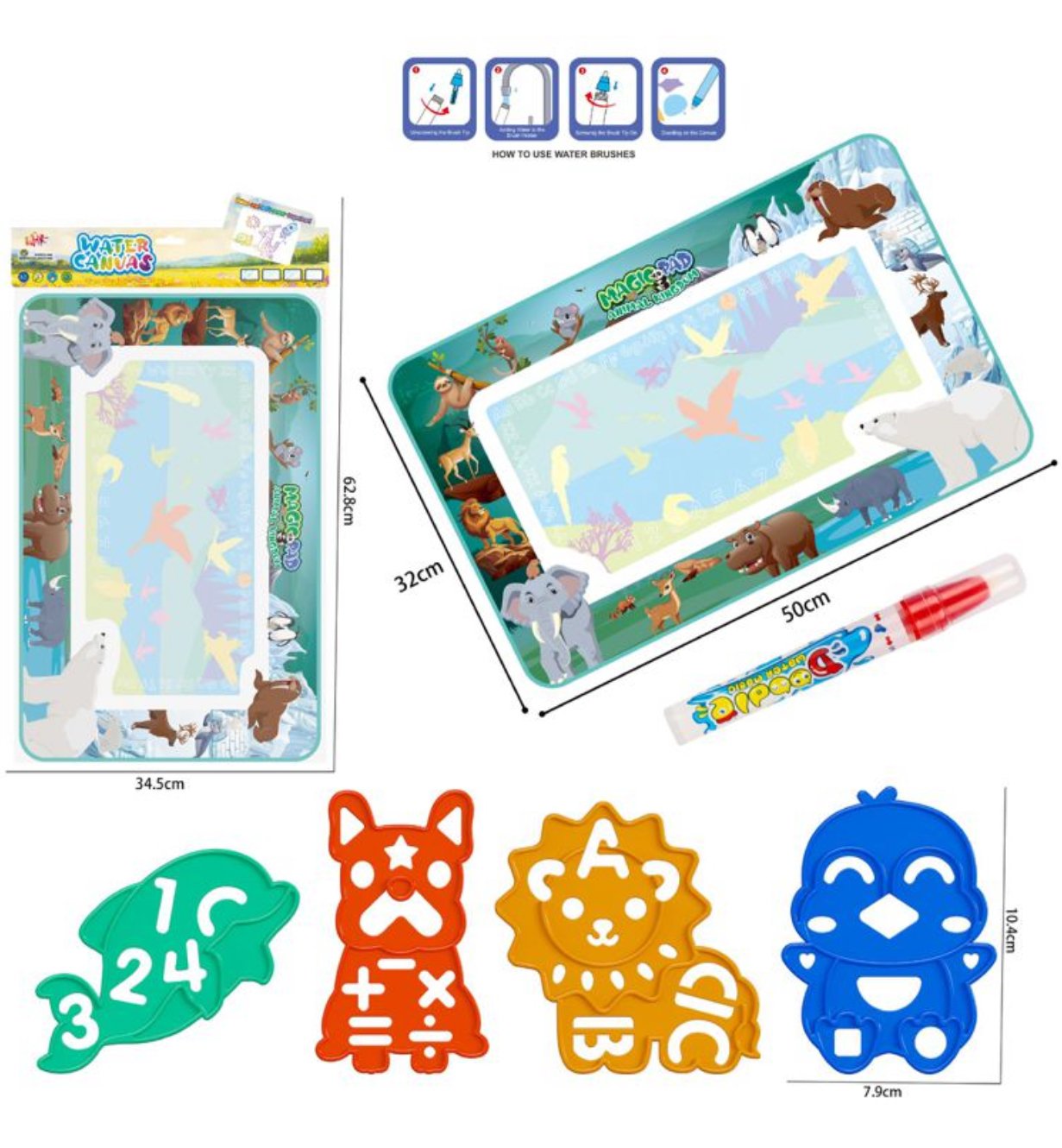Covorasul Aqua Doodle Animale Salbatice ofera copiilor o modalitate curata, sigura si creativa de a desena. Setul contine covorasul de 50x32 cm, o carioca magica ce se umple doar cu apa si 4 sabloane cu forme de animale zoo, litere, cifre, semne matematice si forme geometrice. Marginile covorasului includ ilustratii atractive care ii inspira pe cei mici.