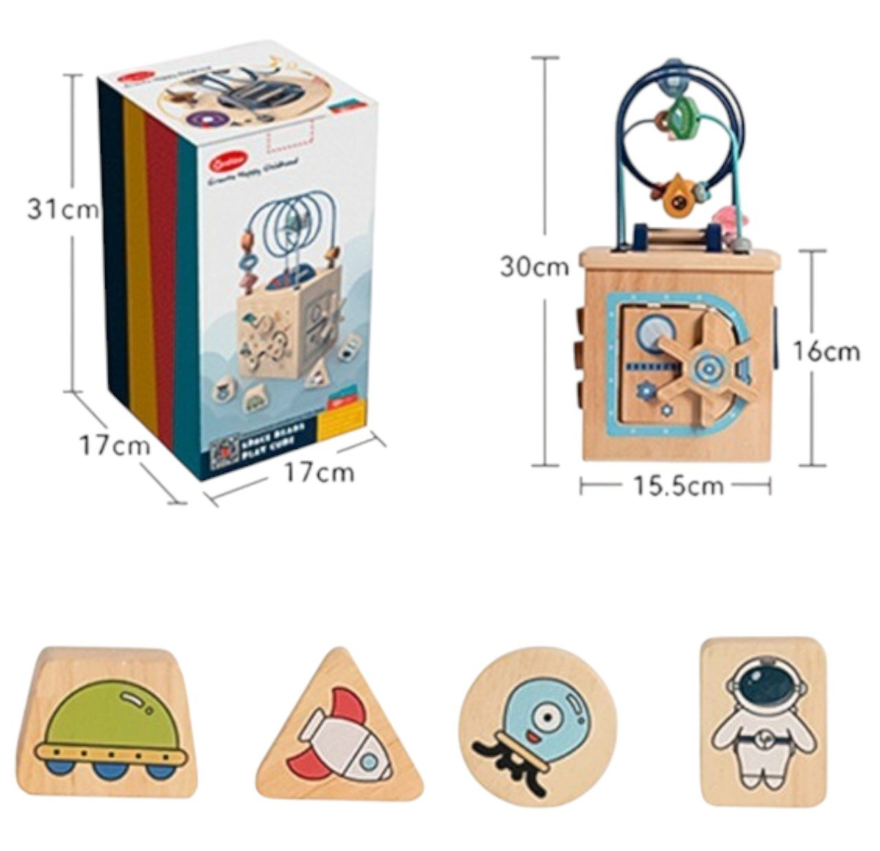 Space Beads Play Cube este o jucarie educativa multifunctionala, perfecta pentru copiii mici care doresc sa exploreze si sa invete prin joaca. Cu un design captivant si diverse activitati interactive, acest cub de activitati le va stimula dezvoltarea cognitiva, abilitatile motorii fine si creativitatea. Acest cub contine diferite tipuri de margele si elemente tactile, perfecte pentru a-i ajuta pe cei mici sa invete despre texturi, culori si forme in timp ce se distreaza.