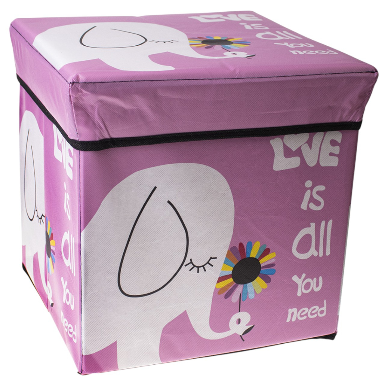 Cutie depozitare jucarii pliabila, Elefantul roz, 30 × 30 × 30 cm