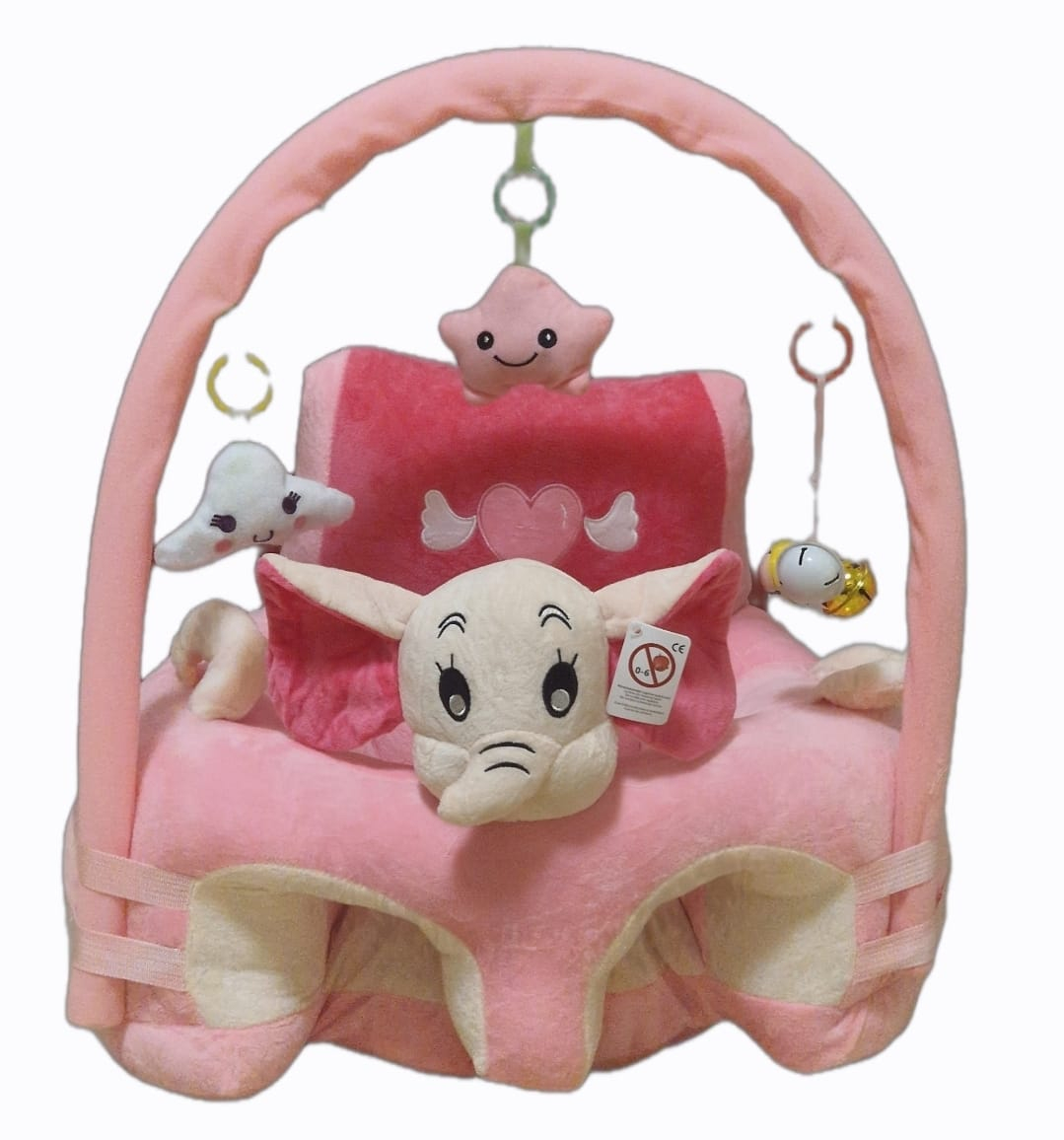 Fotoliu bebe cu perna pe sezut , cu spatar si arcada - Elefant roz