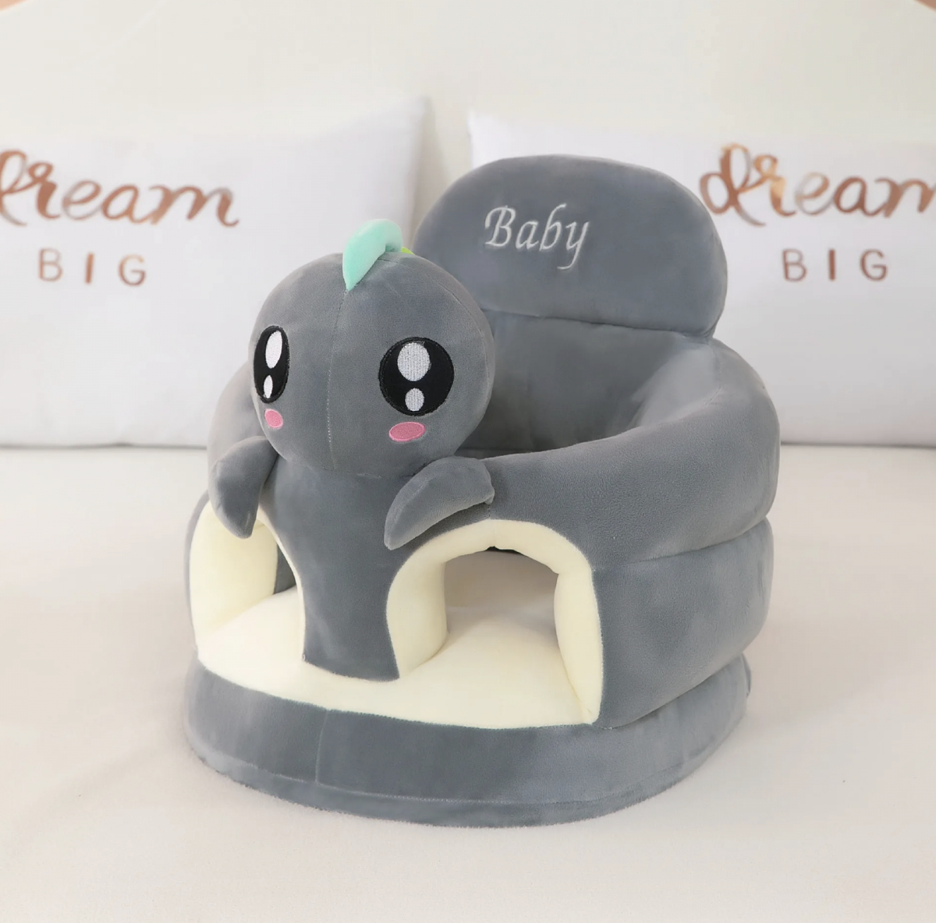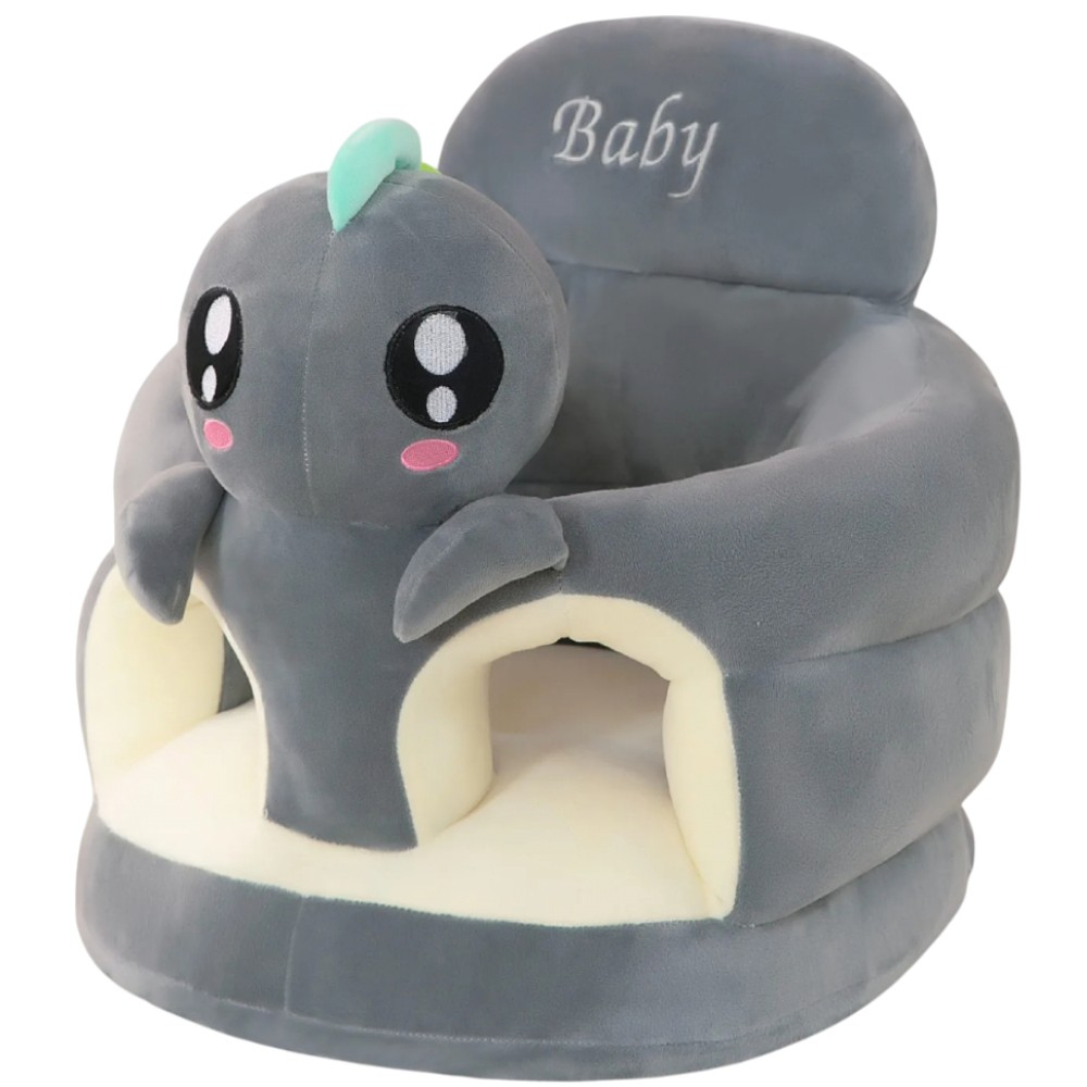Fotoliu pentru bebe din plus moale si catifelat, cu spatar si suport de picioare Dinozaurul bleu. Ideal pentru cei mai mici dintre noi, recomandat de cand bebe sta in sezut si pana la 2 ani.