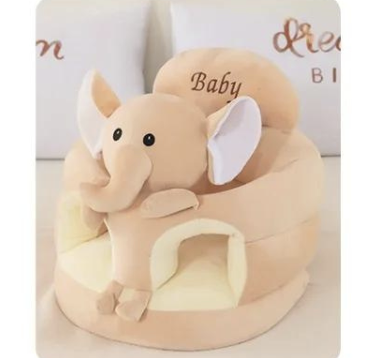 Fotoliu pentru bebe din plus moale si catifelat, cu spatar si suport de picioare Elefantul crem. Ideal pentru cei mai mici dintre noi, recomandat de cand bebe sta in sezut si pana la 2 ani.