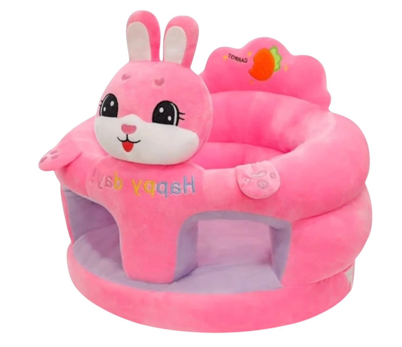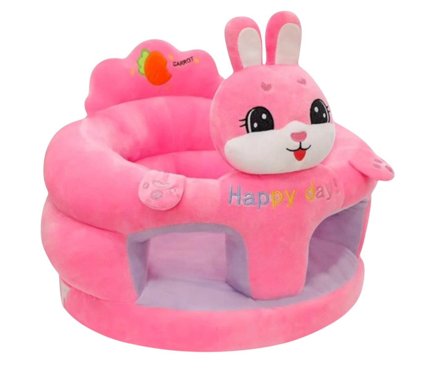 Fotoliu pentru bebe din plus moale si catifelat, cu spatar si suport de picioare Iepurasul roz Happy Day. Ideal pentru cei mai mici dintre noi, recomandat de cand bebe sta in sezut si pana la 2 ani.