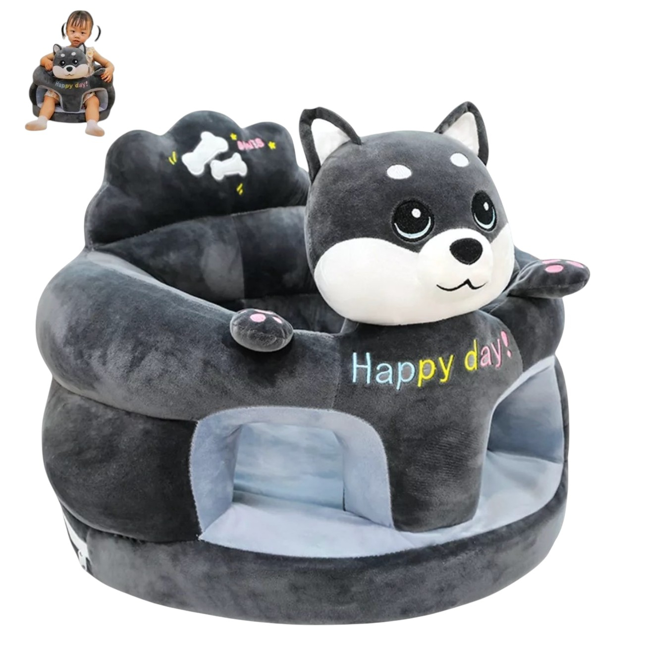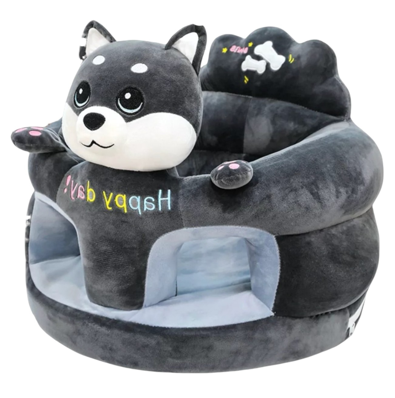 Fotoliu pentru bebe din plus moale si catifelat, cu spatar si suport de picioare Pisicuta gri inchis Happy Day. Ideal pentru cei mai mici dintre noi, recomandat de cand bebe sta in sezut si pana la 2 ani.
