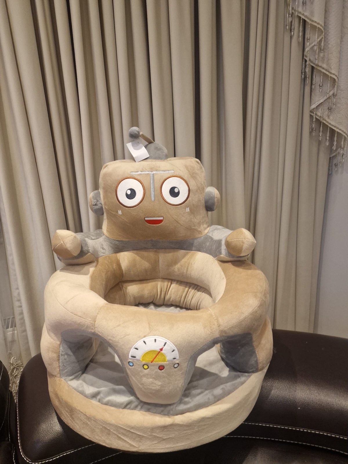 Fotoliul pentru bebe Robotelul verde este confectionat din plus moale si catifelat, oferind confort si siguranta in timpul folosirii. Designul ergonomic, cu spatar si suport de picioare, este special gandit pentru sustinerea coloanei si a posturii corecte a bebelusului.