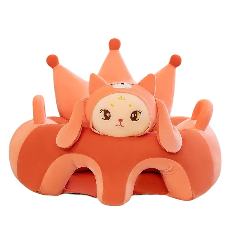 Fotoliu pentru bebe din plus moale si catifelat, cu spatar si suport de picioare - cu coroana regala, cap de animalut. Este un fotoliu cu un design special gandit pentru sustinerea comfortabila a coloanei, putand fi pus bebelusul doar daca acesta are tendinta de a se ridica sau daca reuseste sa isi mentina pozitia de sezut.