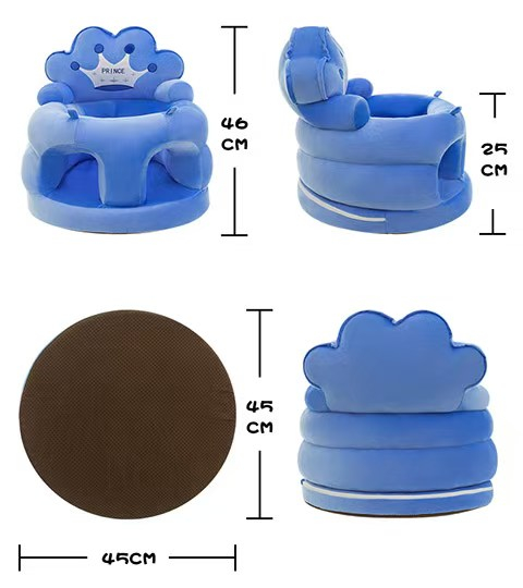 Fotoliul pentru bebe Printul Albastru este confectionat din plus moale si catifelat, oferind confort si siguranta in timpul folosirii. Designul ergonomic, cu sezut moale cu umplutura din placa de burete, spatar si suport de picioare, umplute cu vatelina este special gandit pentru sustinerea coloanei si a posturii corecte a bebelusului.