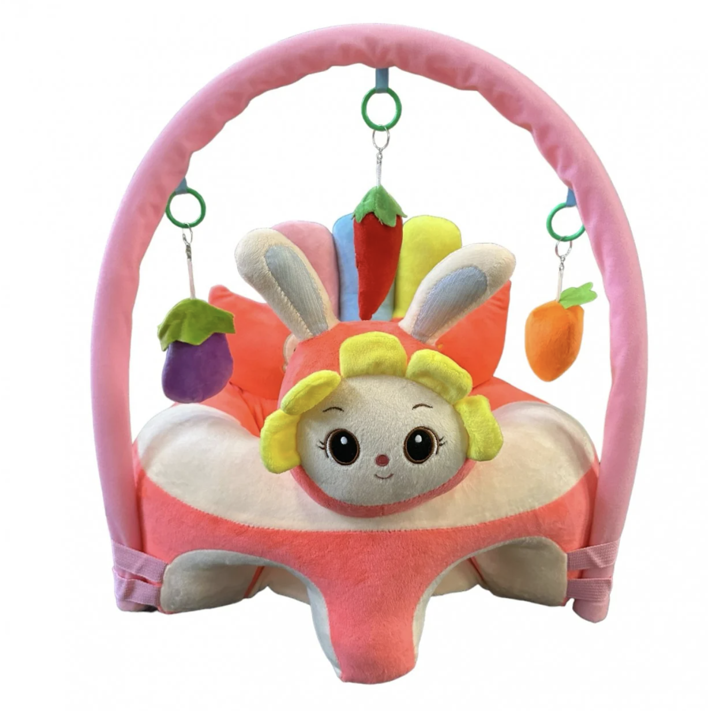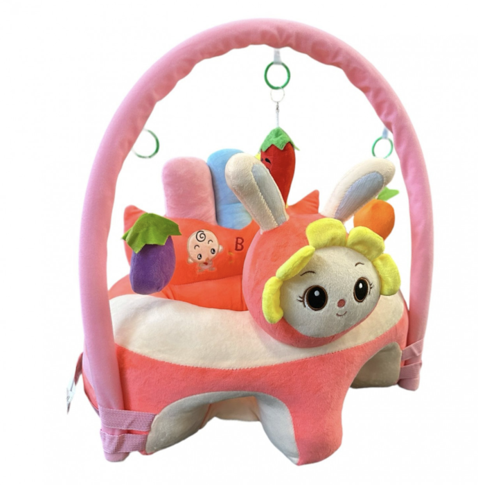 Fotoliu bebelusi cu spatar, sustinere picioare si arcada cu jucarii, Iepurasul Floricica roz