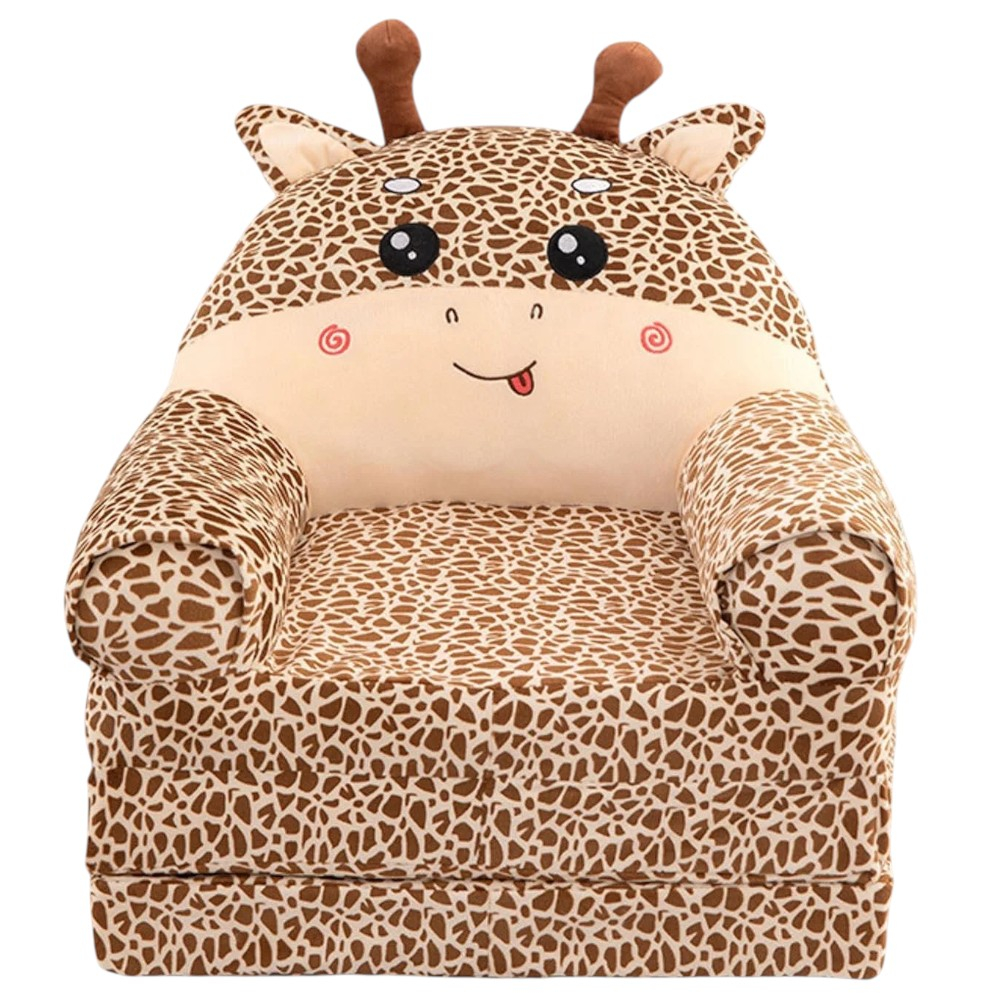 Fotoliul extensibil Girafa crem cu pete maro este o jucarie moale si confortabila, special conceputa pentru copii. Realizat din plus catifelat de calitate, acesta poate fi folosit atat ca fotoliu pentru relaxare, cat si ca suprafata extensibila pentru odihna sau joaca.