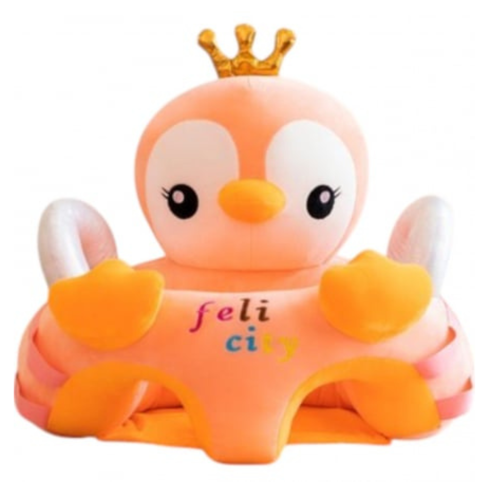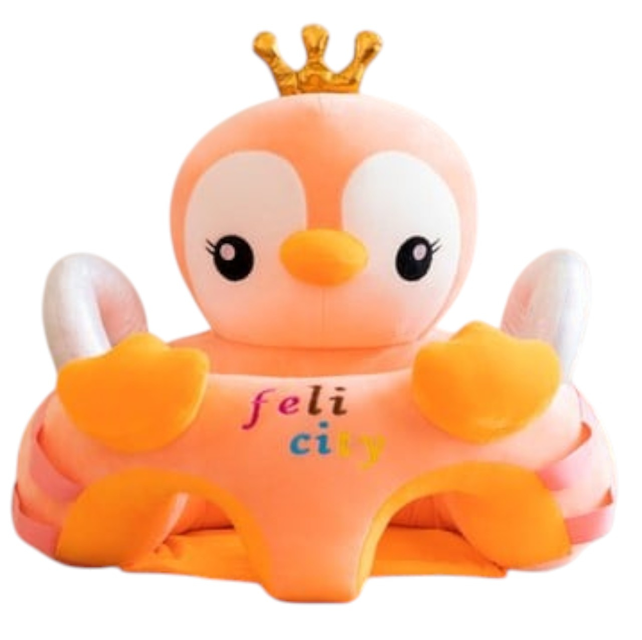 Fotoliu pentru bebe maxi din plus cu spatar - Pinguin portocaliu. Ideal pentru cei mai mici dintre noi, recomandat de la 12 luni pana la 2 ani.