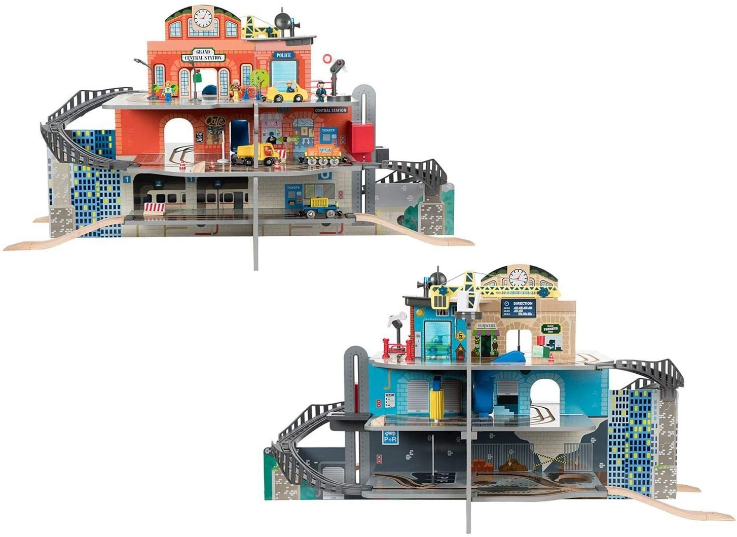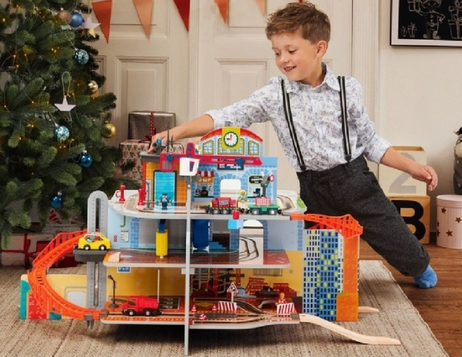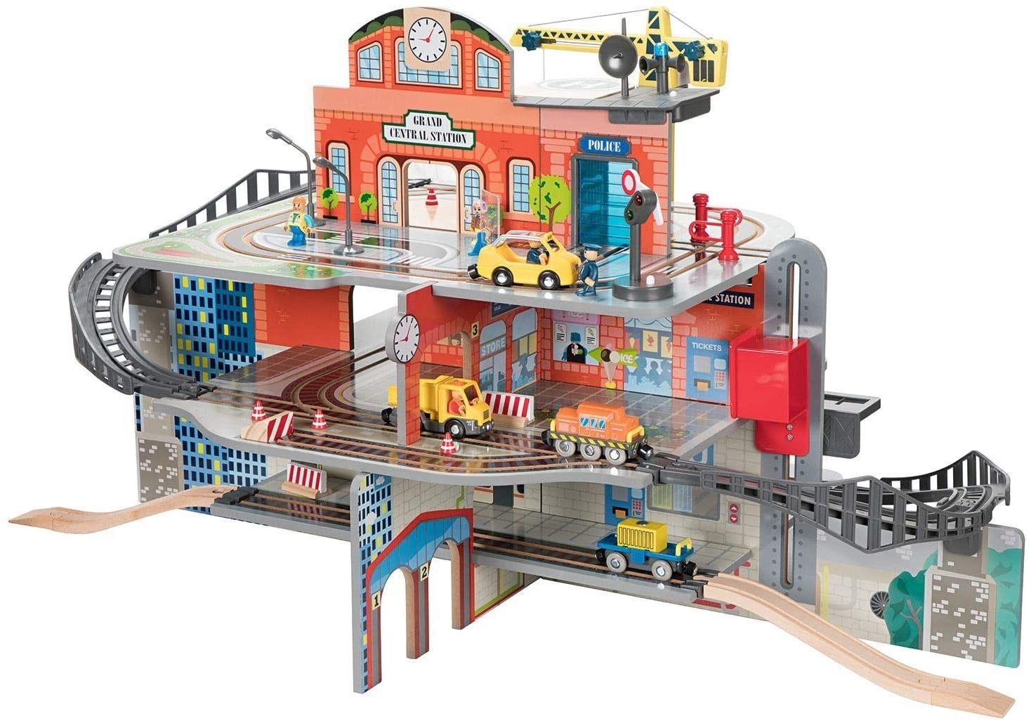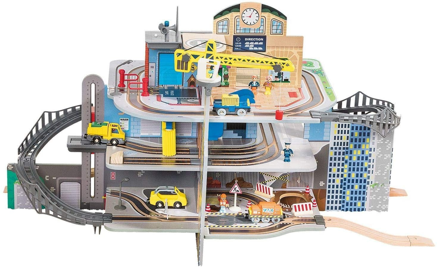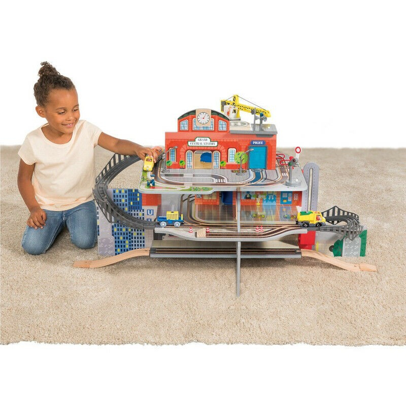 Gara de trenuri Jumbo Deluxe cu 3 etaje, cu circuit, heliport, spalatorie, din lemn