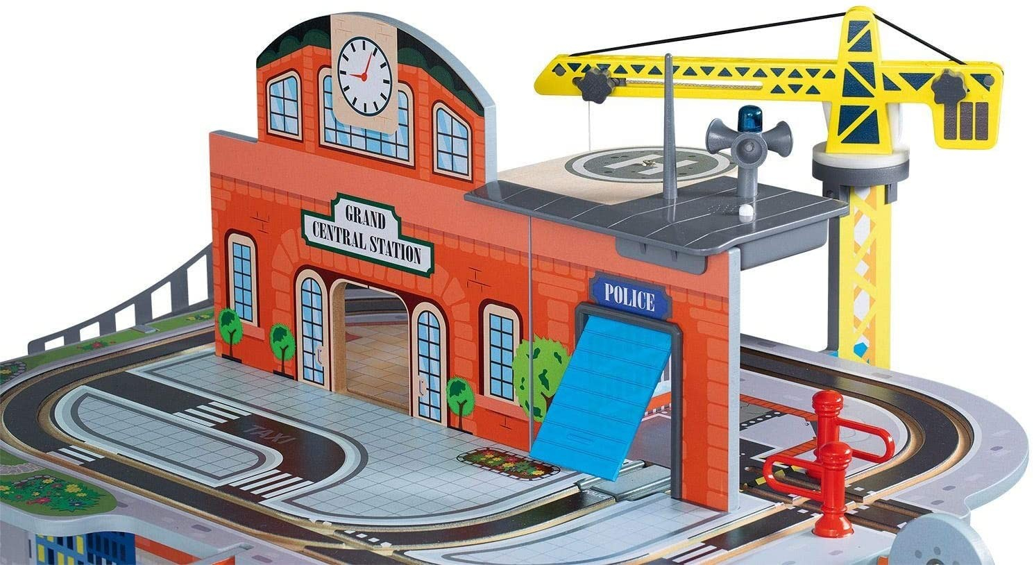 Statia de tren cu efecte de lumina si sunet: Include o statie de politie cu lumina si sunet, un centru logistic cu spital si un heliport pentru elicopter.