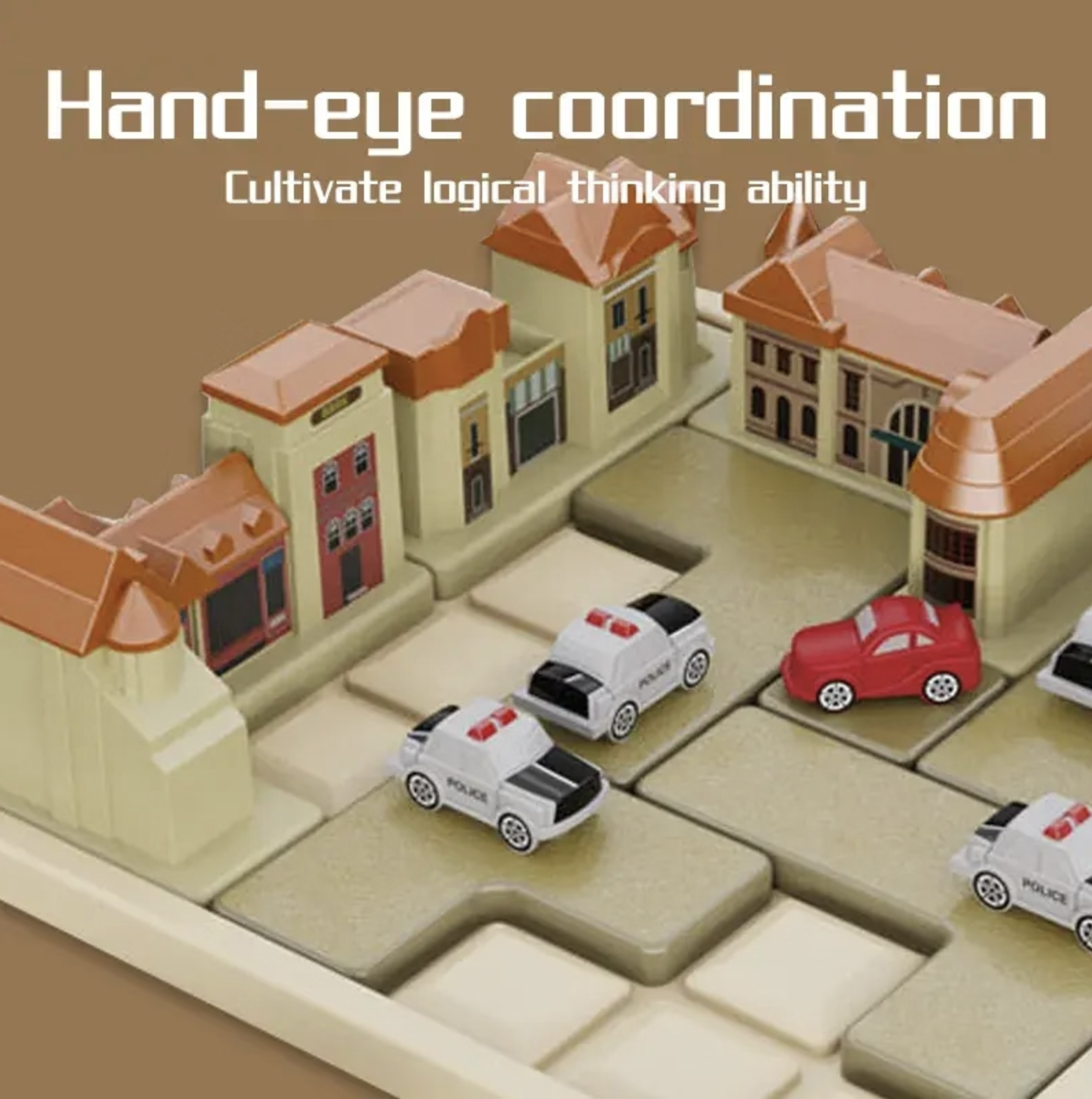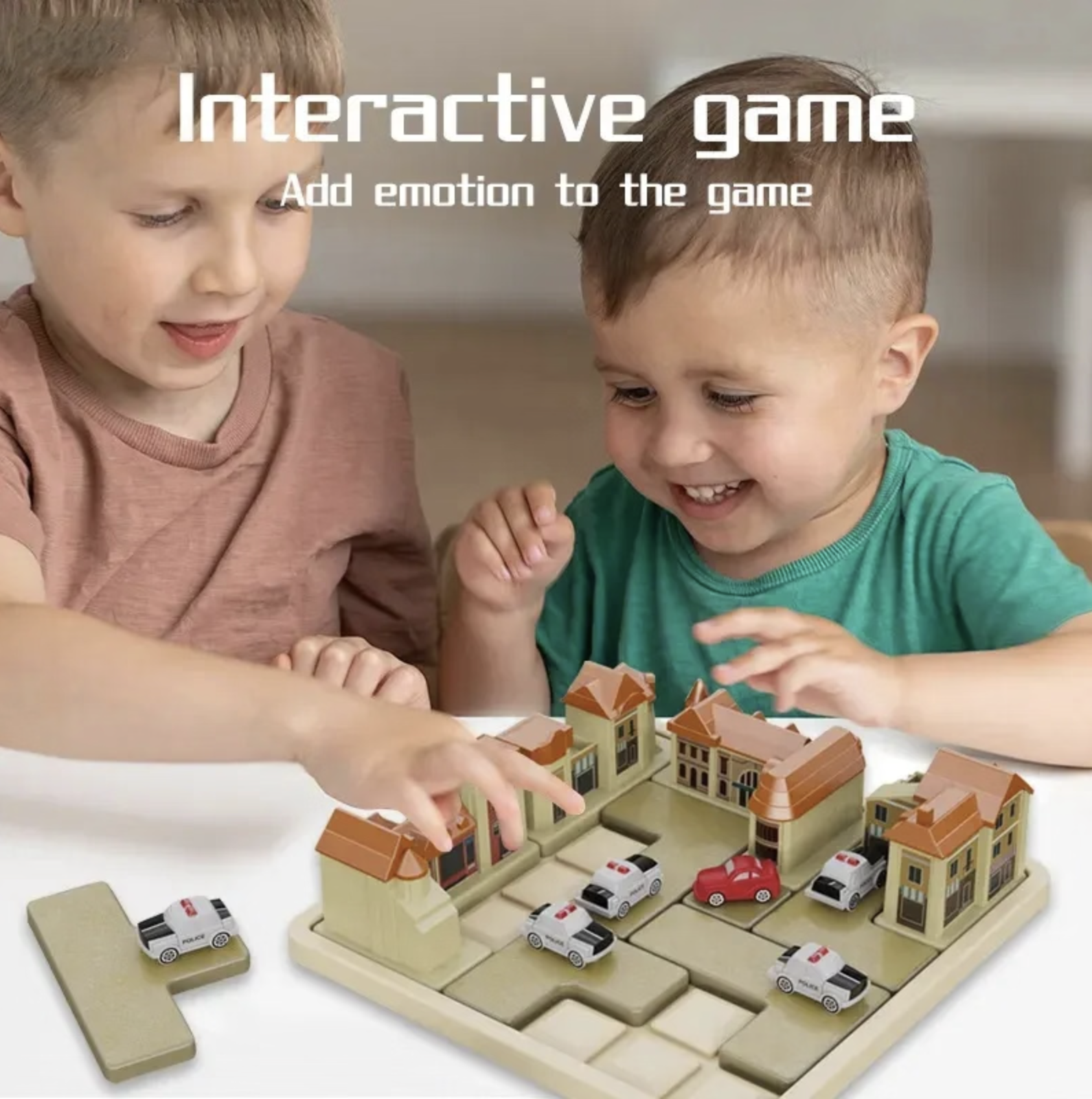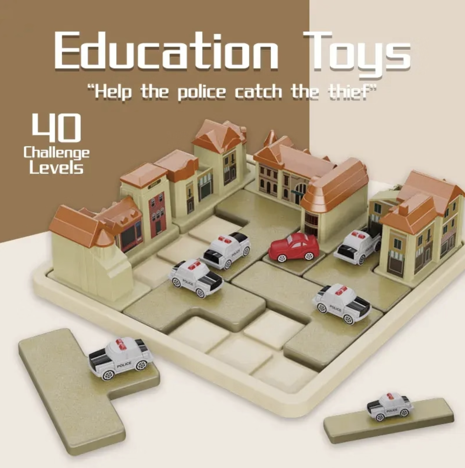 Jocul de logica Help the Police Catch the Thief este un puzzle de tip glisare, in care copilul trebuie sa mute piesele pentru a crea un traseu si a ajuta masinile de politie sa blocheze sau sa prinda masina hotului. Jocul are 40 de niveluri de provocare si este recomandat pentru 6 ani+. Designul cu cladiri 3D si masinute transforma jocul intr-o activitate atractiva, care sustine gandirea logica, planificarea, atentia si orientarea spatiala, un joc de concentrare si interactiune parent-child.