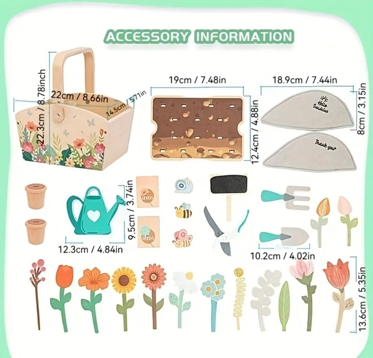 Copiii pot sa se joace folosind uneltele pentru a "planta" semintelor si a ingriji florile. Acestia pot simula procesul de udare a plantelor folosind stropitoarea si pot invata cum sa recunoasca diverse tipuri de flori si insecte.