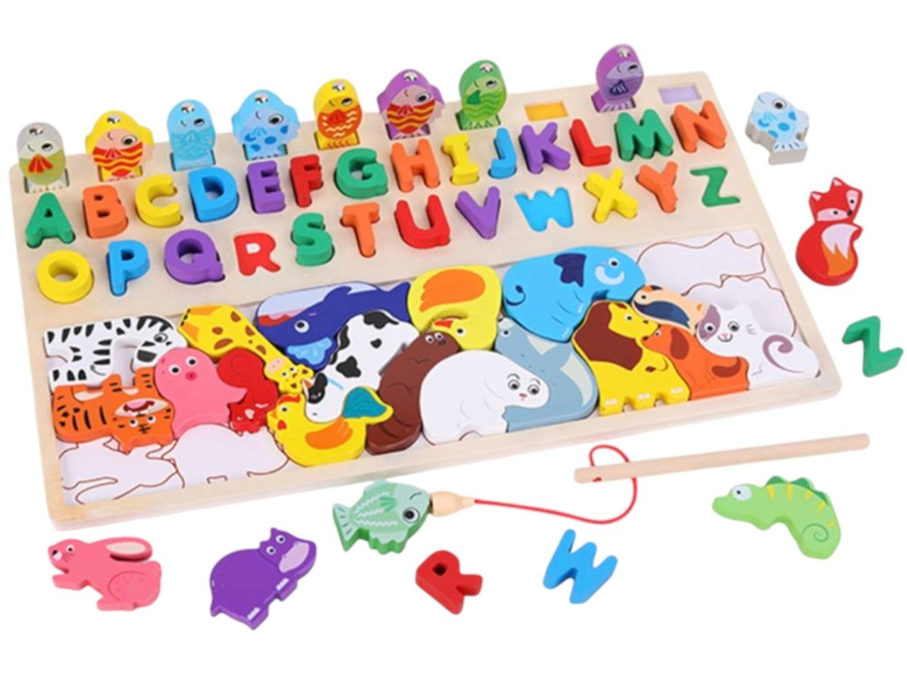 Dezvoltare motorie fina: Jocul de pescuit si manipularea pieselor ajuta la coordonarea mana-ochi si controlul dexteritatii.