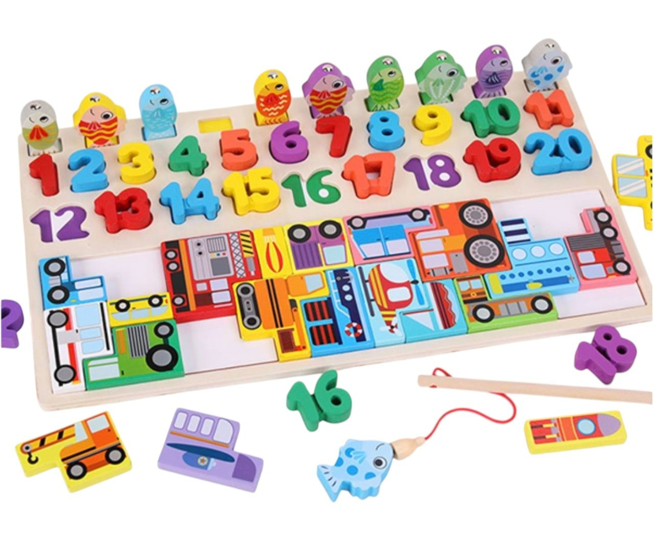 Dezvoltare motorie fina: Jocul de pescuit si manipularea pieselor ajuta la coordonarea mana-ochi si controlul dexteritatii.