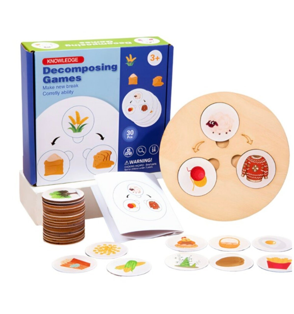 Joc Montessori Decomposing Game, Etapele Vietii, din Lemn – Joc Educativ Puzzle pentru Copii