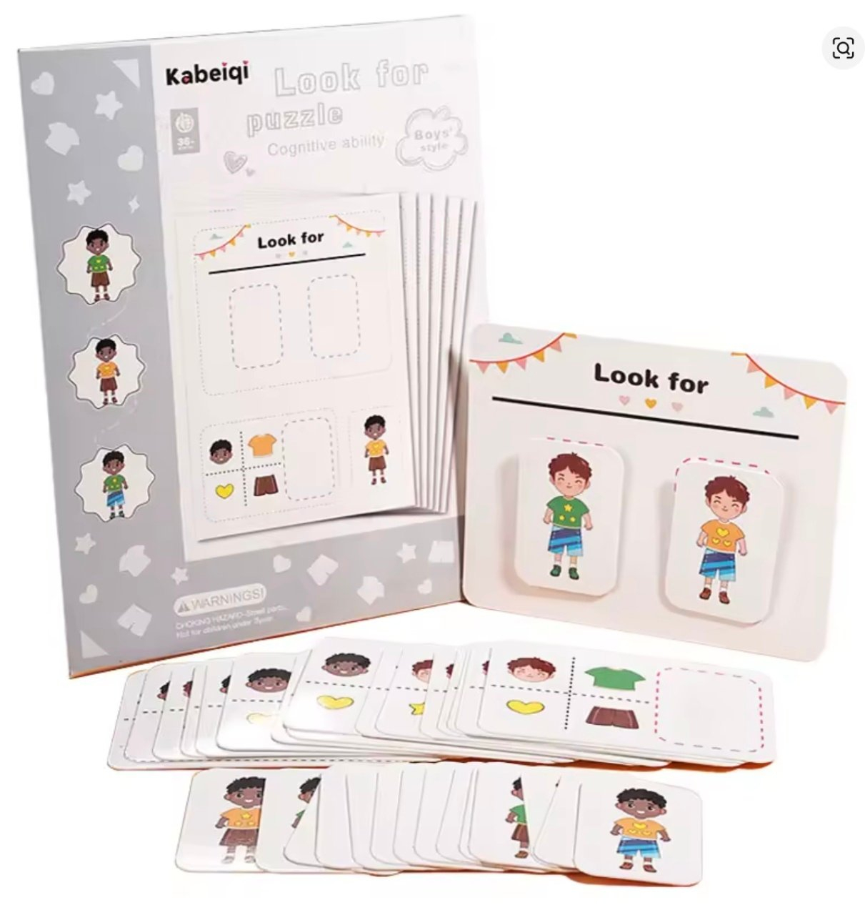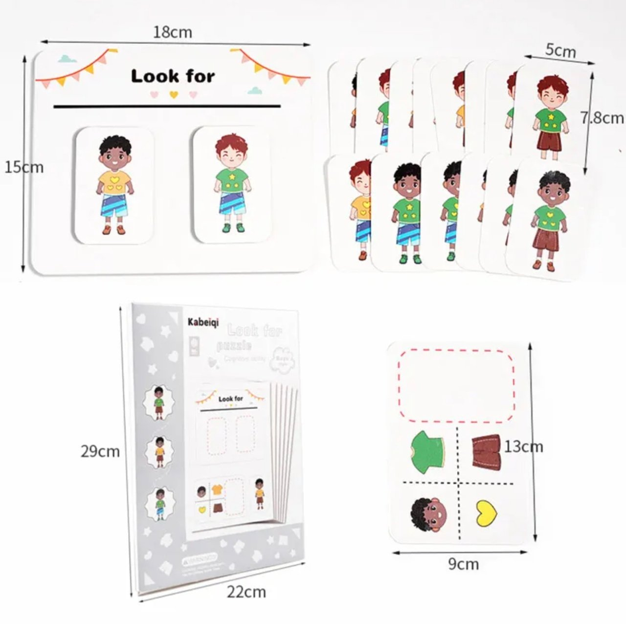 Jocul Montessori senzorial "Potiveste hainele" este un joc educativ ideal pentru copii cu varsta intre 3 si 6 ani. Acesta ajuta la dezvoltarea gandirii logice si a abilitatii de a recunoaste formele, imbunatatind coordonarea mana-ochi si stimuland dezvoltarea senzoriala a celor mici. Jocul include forme de haine divers colorate, care trebuie potrivite in spatiile corespunzatoare, oferind o experienta interactiva si educativa.
