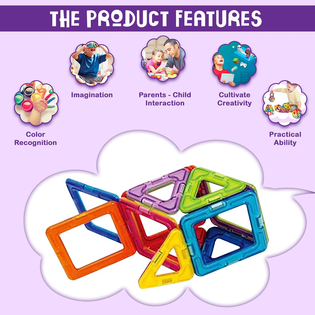 - Jocul de constructii magnetic dezvolta creativitatea copiilor mici, abilitatile motrice fine si coordonarea ochi-mana.
