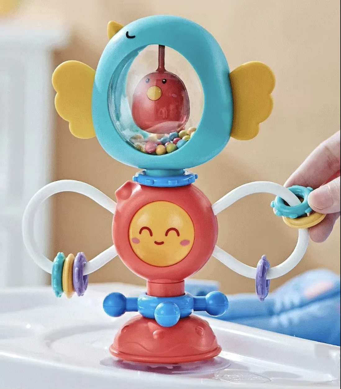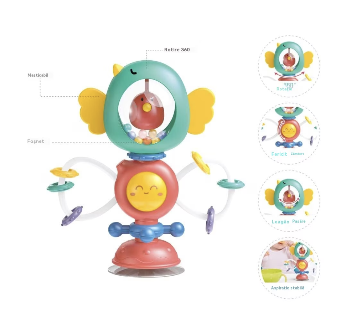 Jucarie 2 in 1 cu zornaitoare, ventuza si functii rotative, ABS, 6 luni+