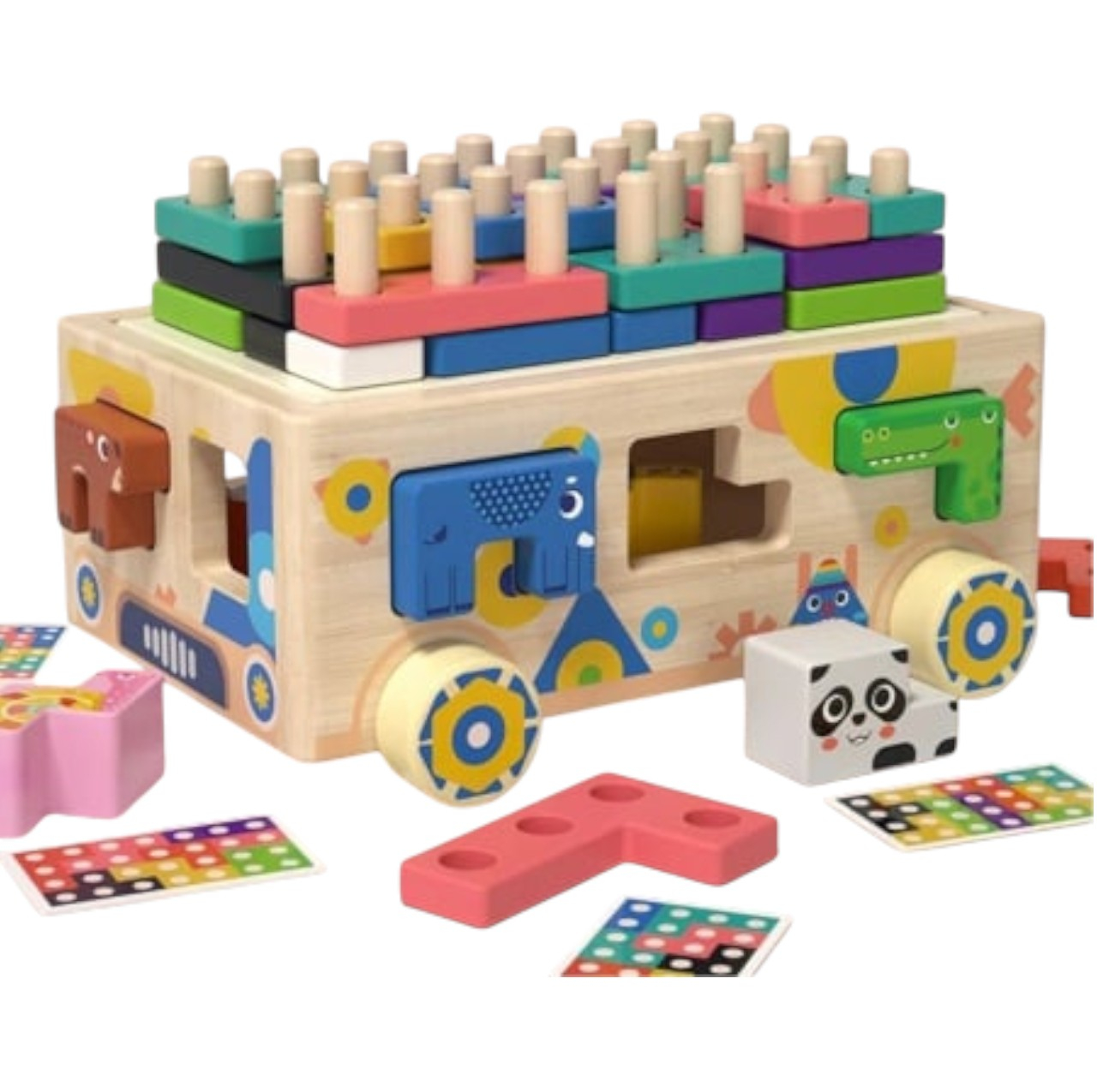 O jucarie completa si multifunctionala, perfecta pentru micutii curiosi care doresc sa exploreze lumea fermelor prin joaca! Aceasta masinuta din lemn colorata aduce 8 activitati educative, care stimuleaza invatarea prin explorare si dezvolta motricitatea si coordonarea copiilor, inspirata din principiile Montessori.