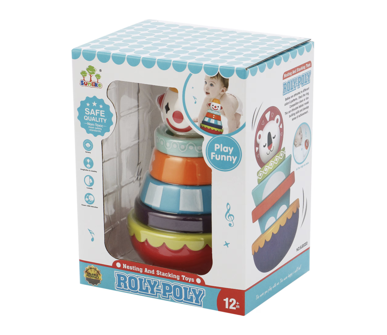 Copiii pot invata secvente, dimensiuni, cauze si efecte prin aranjarea inelelor sub forma de turn, amuzandu-se in timp ce dezvolta abilitatile motorii fine. Turnul clovnului se poate inclina usor inainte si inapoi, oferind un element distractiv si provocator pentru cei mici.