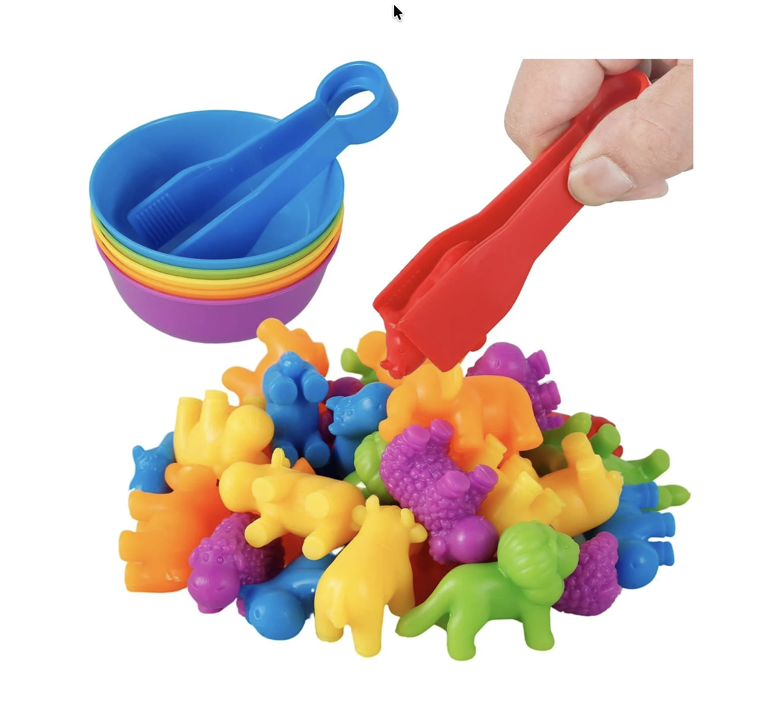 Jucarie de prindere cu pensete si sortare in paharelele colorate si siliconate