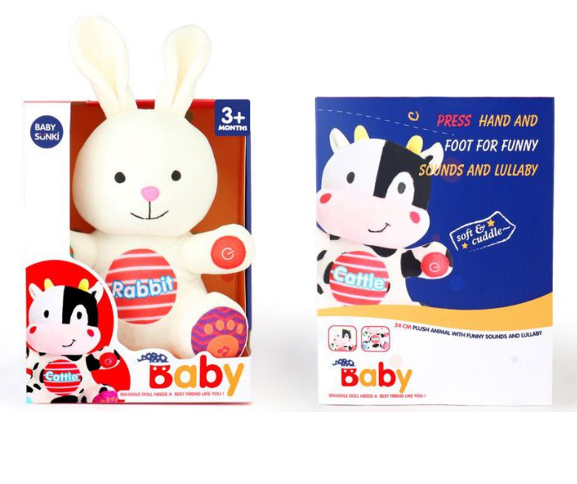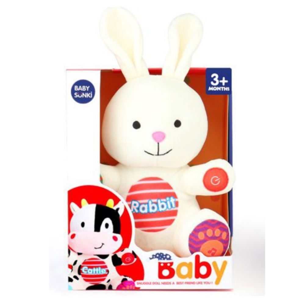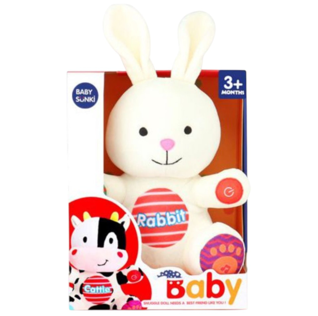Iepurasul Baby Sunki este o jucarie de plus adorabila și interactivă, perfectă pentru a aduce zâmbete pe chipul oricărui copil. Cu designul său prietenos, textură moale și funcții captivante, această jucărie devine rapid un companion de joacă și somn.