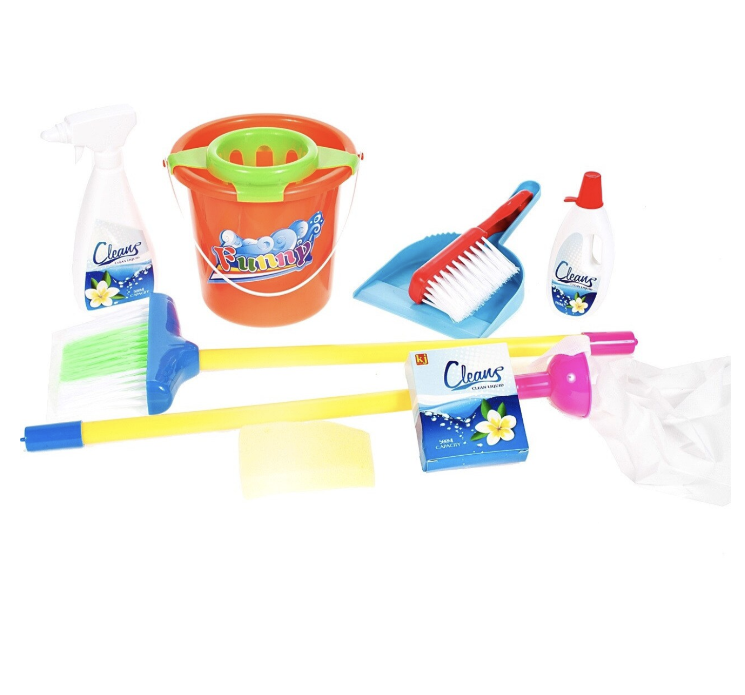 • Accesorii Complete de Curatenie: Setul include mop, galeata cu storcator, lavete, matura, faras si multe altele, toate pentru a imita activitatile de curatenie ale adultilor.