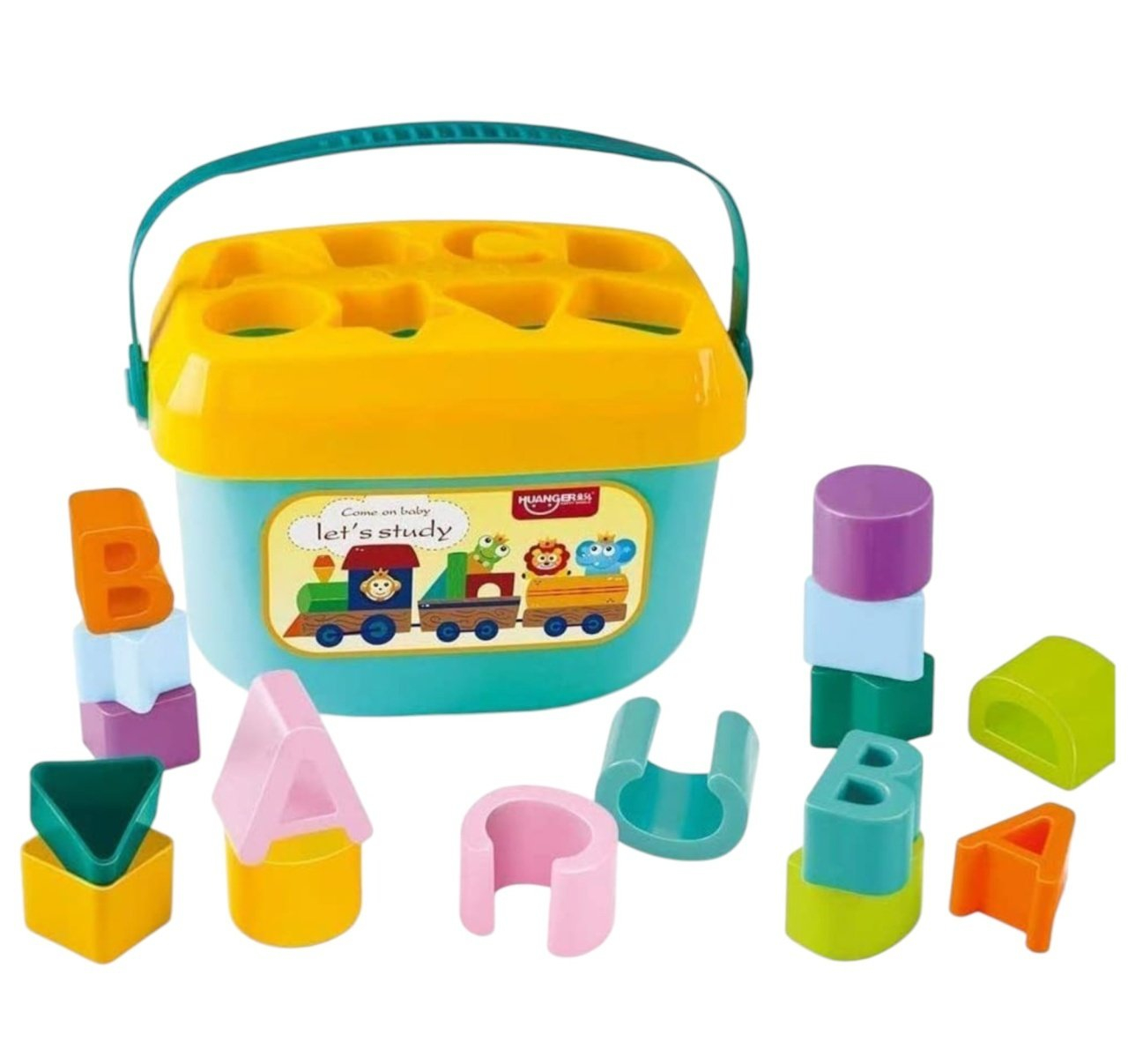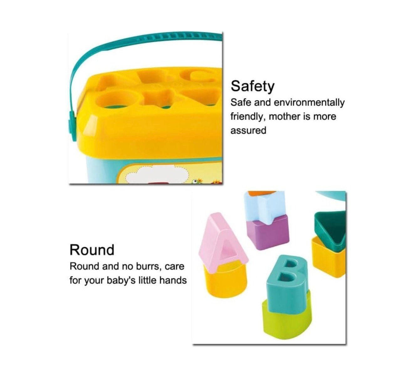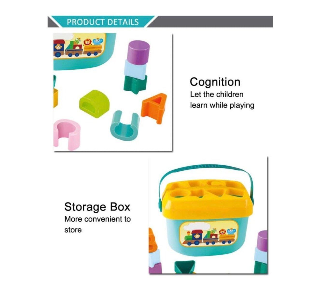 Set complet de 18 piese: Include o găletușă de depozitare și 16 cuburi colorate de sortat, în forme și culori diferite.
