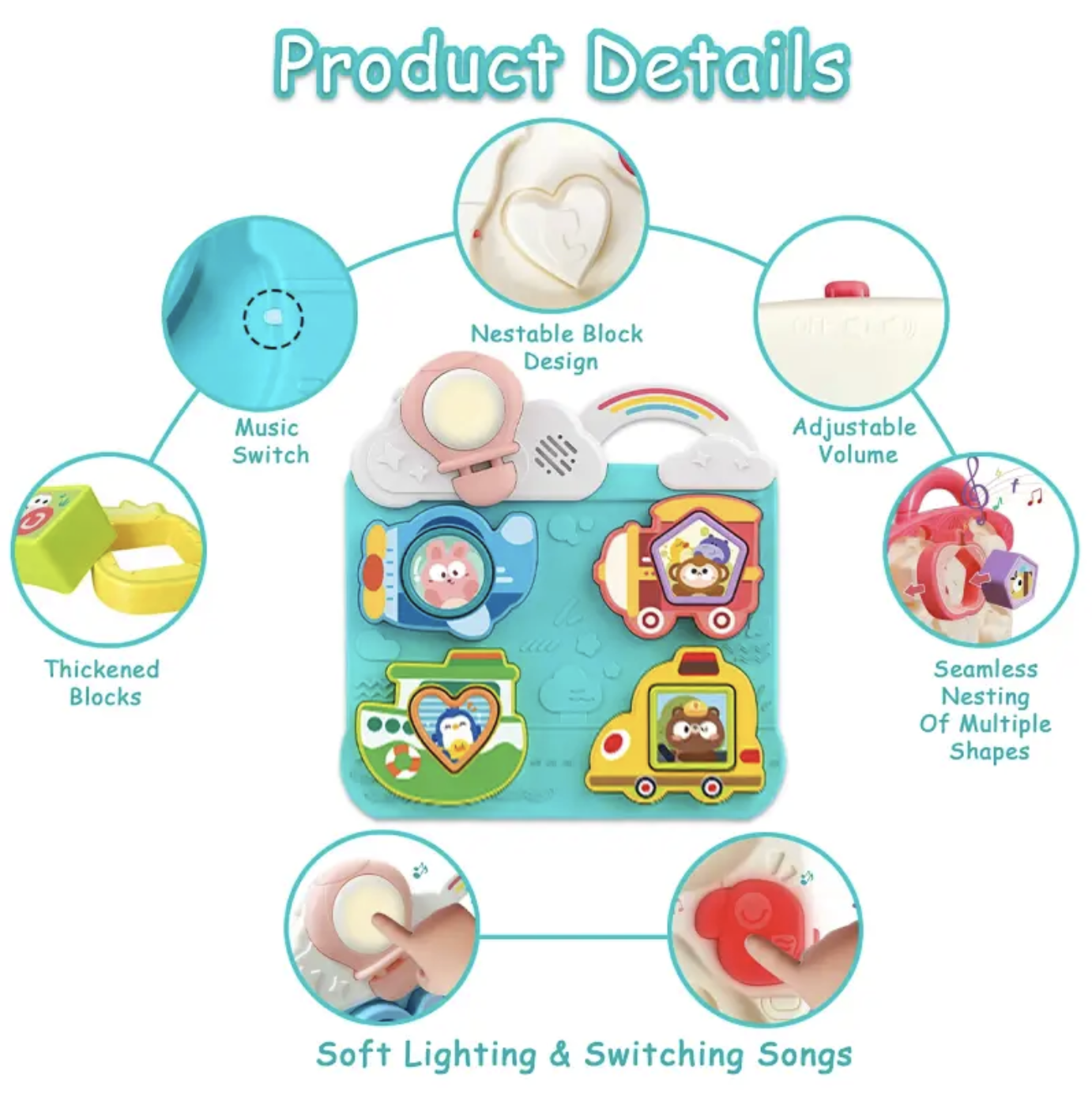 Ajuta-ti copilul sa descopere lumea culorilor, formelor si sunetelor cu aceasta jucarie educativa interactiva – Block Transport Puzzle. Conceputa special pentru copiii de la 18 luni in sus, jucaria imbina perfect distractia si invatarea, dezvoltand abilitatile cognitive, motorii si senzoriale ale celor mici.