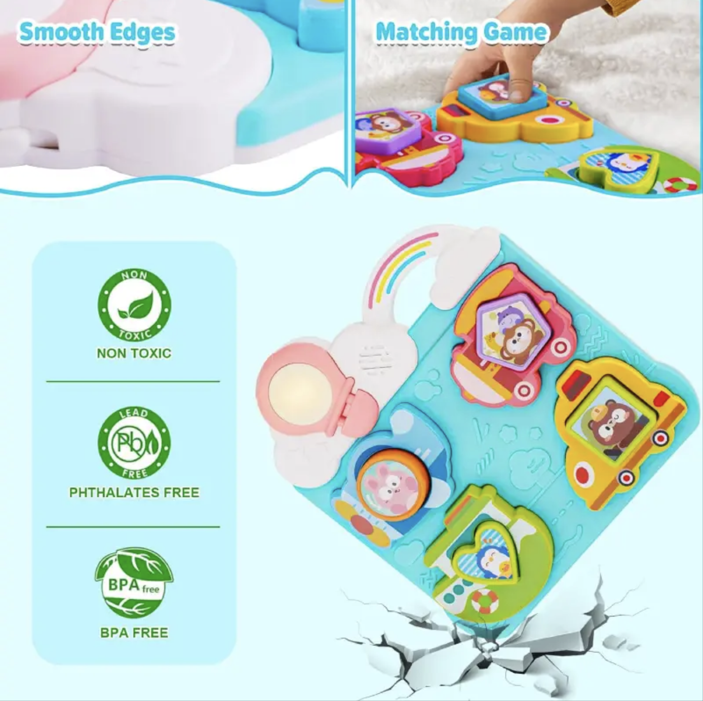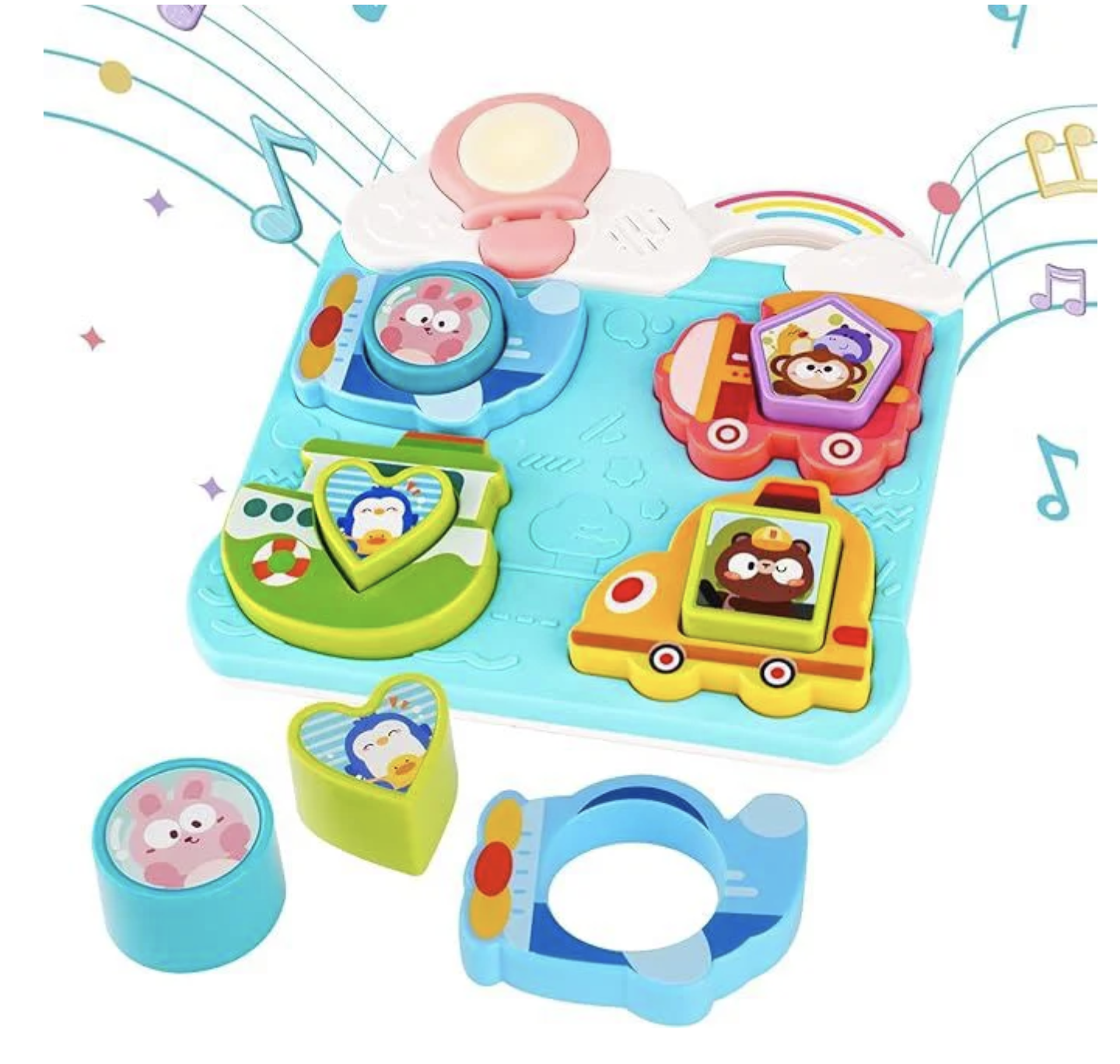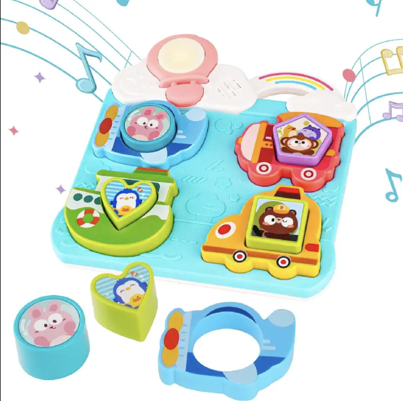 Aceasta jucarie tip puzzle transforma fiecare moment de joaca intr-o experienta educativa. Cei mici vor fi captivati de vehiculele si animalele viu colorate, pe care le pot potrivi in spatiile corespunzatoare, invatand sa recunoasca si sa asocieze forme, culori si sunete.