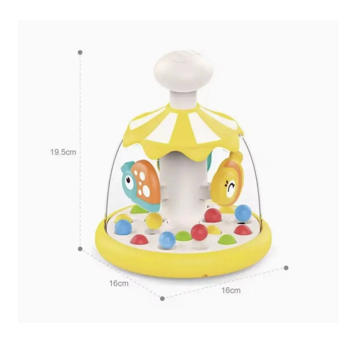 Aceasta jucarie stimuleaza simturile vizuale, incurajeaza coordonarea mana-ochi si dezvolta abilitatile motorii fine. Caruselul este fabricat din plastic de inalta calitate, sigur pentru copii, cu margini rotunjite si dimensiuni potrivite pentru mainile mici.