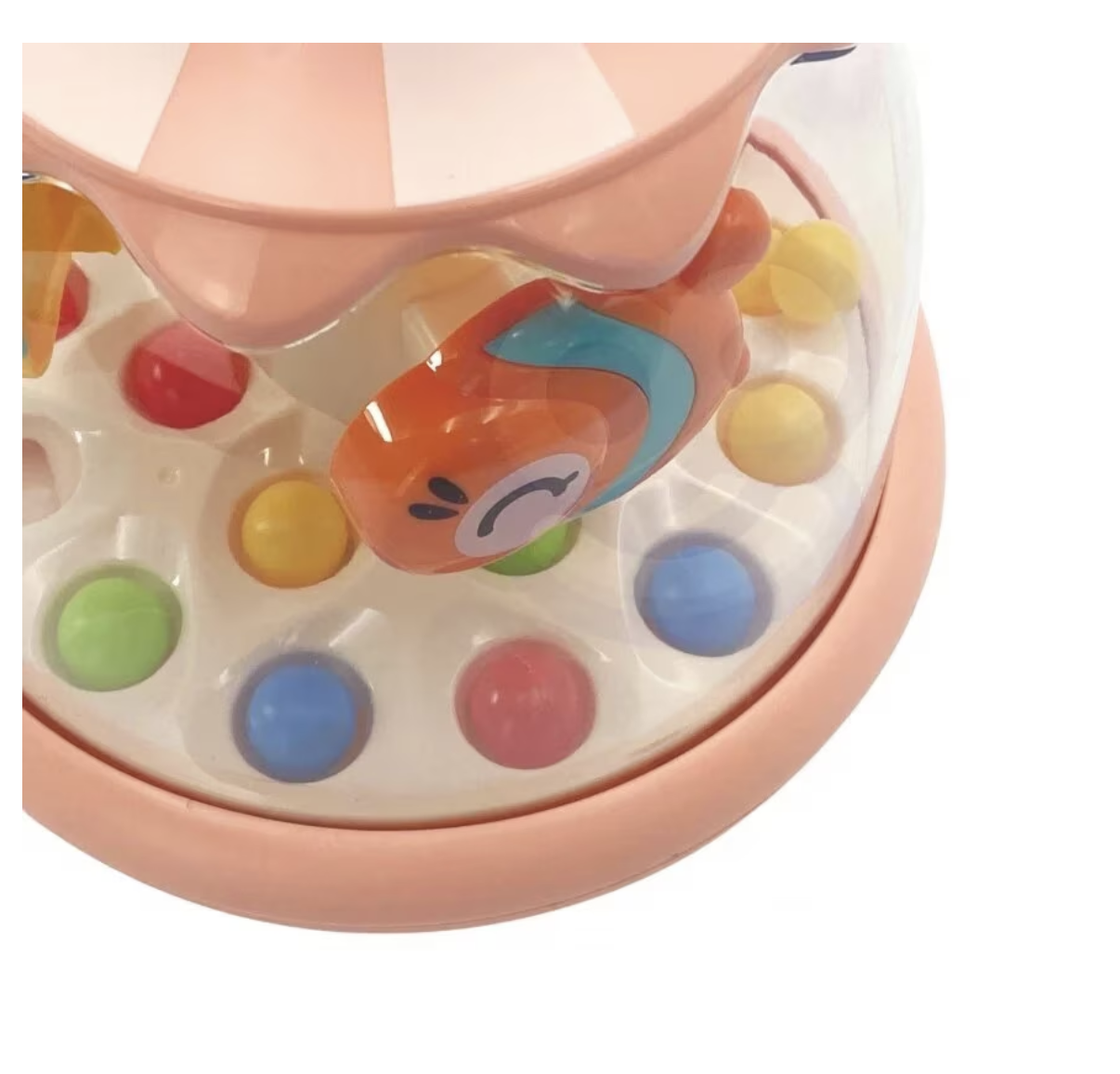 Aceasta jucarie stimuleaza simturile vizuale, incurajeaza coordonarea mana-ochi si dezvolta abilitatile motorii fine. Caruselul este fabricat din plastic de inalta calitate, sigur pentru copii, cu margini rotunjite si dimensiuni potrivite pentru mainile mici.