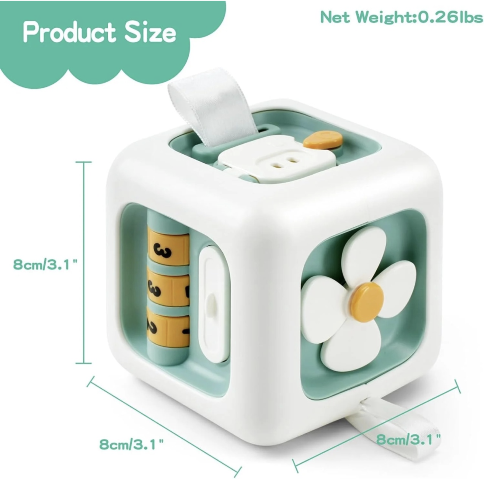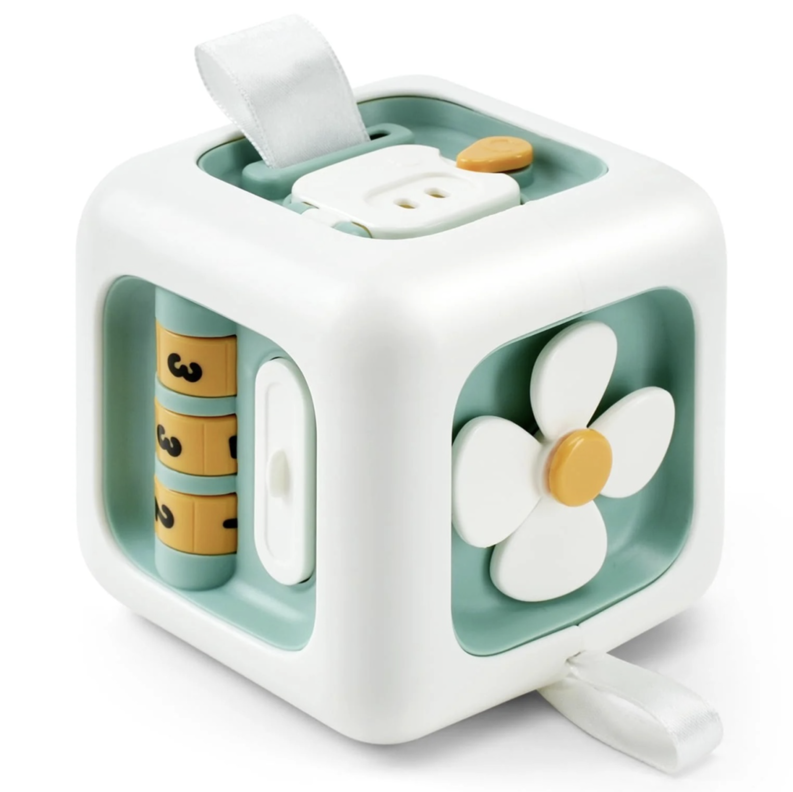 Busy Cube este o jucarie interactiva cu 6 activitati diferite, conceputa pentru a stimula curiozitatea, indemanarea si coordonarea copiilor mici. Fiecare latura propune o activitate practica: usita cu inchidere, joc de tras, ceas, spinner tip floricica, disc telefon si intrerupatoare cu butoane. Prin joaca, copilul isi exerseaza motricitatea fina, coordonarea mana-ochi, miscarile de rotire si apasare, precum si primele notiuni despre mecanisme simple si timp. Formatul compact o face usor de manevrat acasa sau in deplasare.
