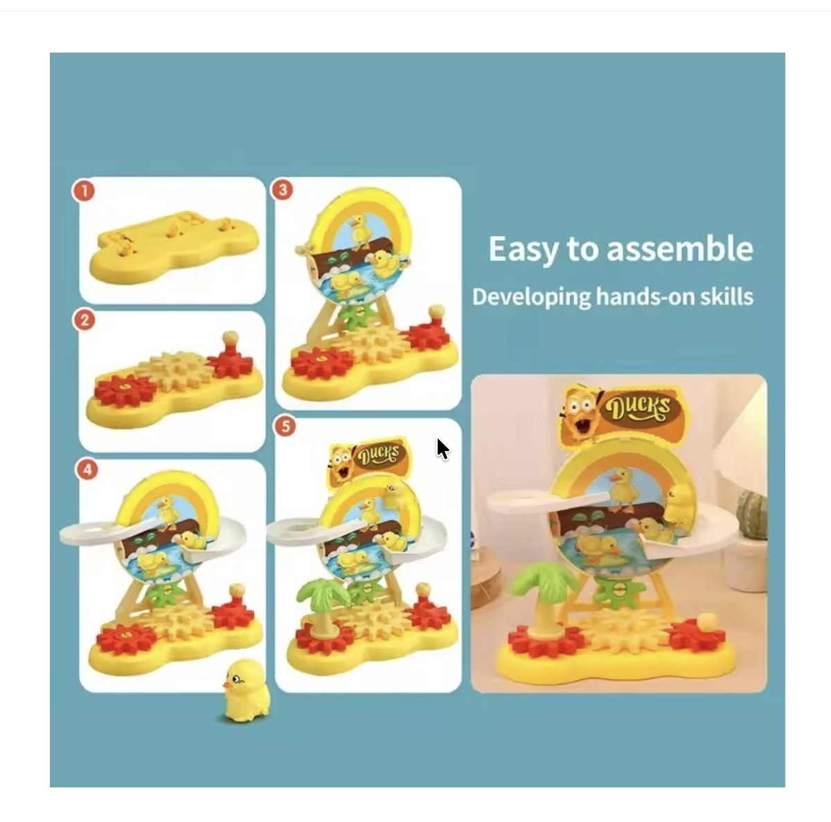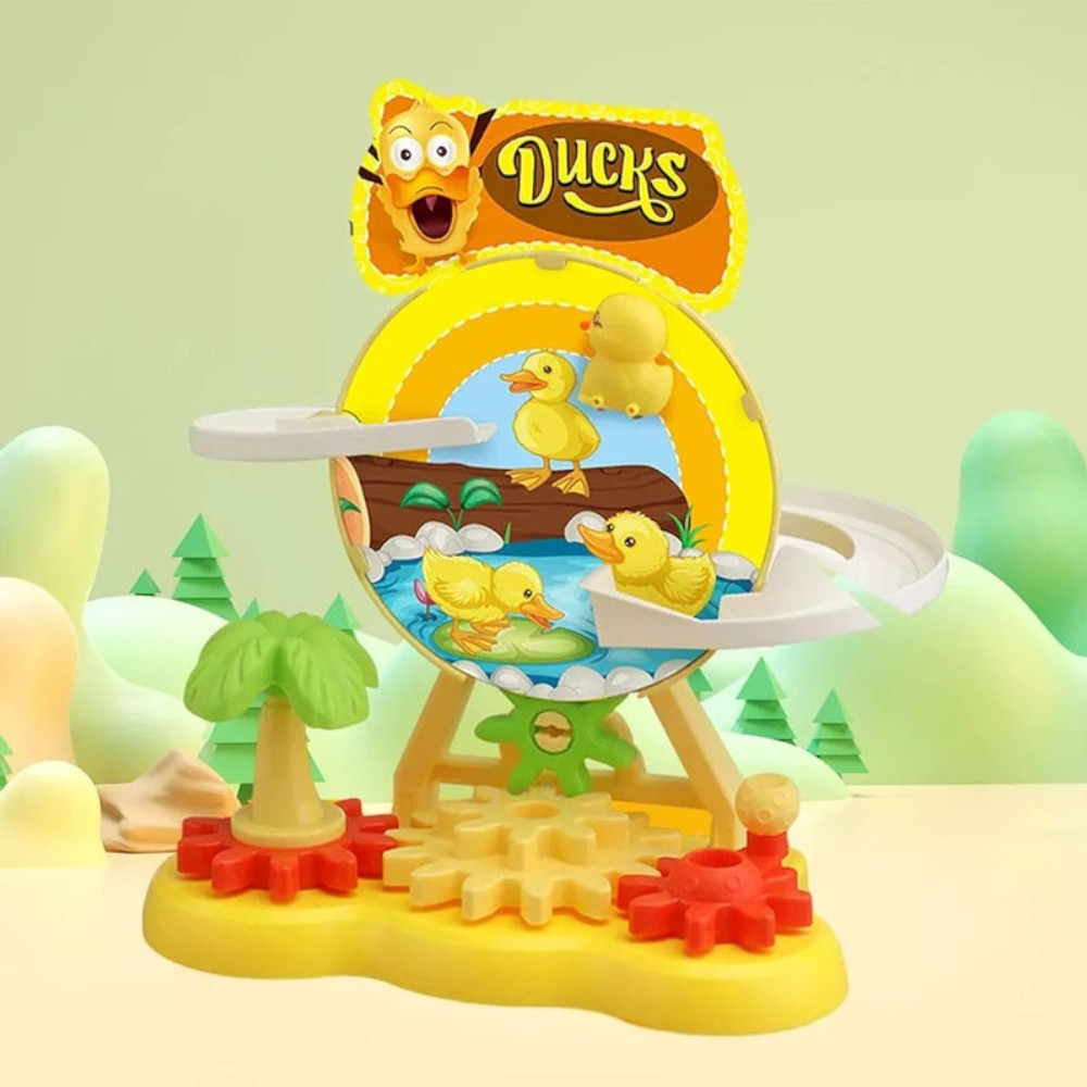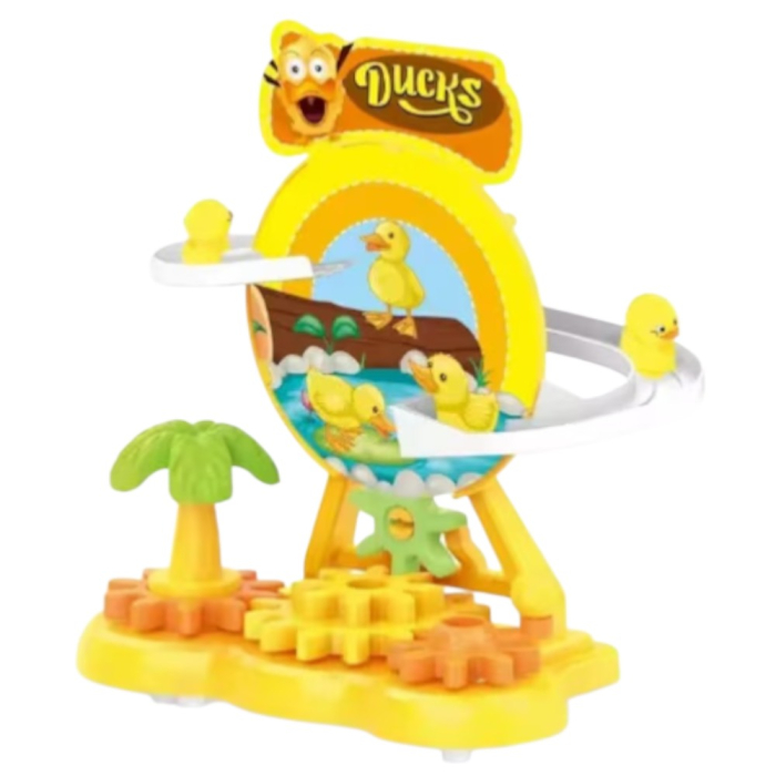 Jucarie interactiva cu ratuste care se plimba pe pista si trec prin roata, pentru joaca dinamica si distractiva. Design colorat, atractiv pentru cei mici, potrivit pentru joaca acasa.