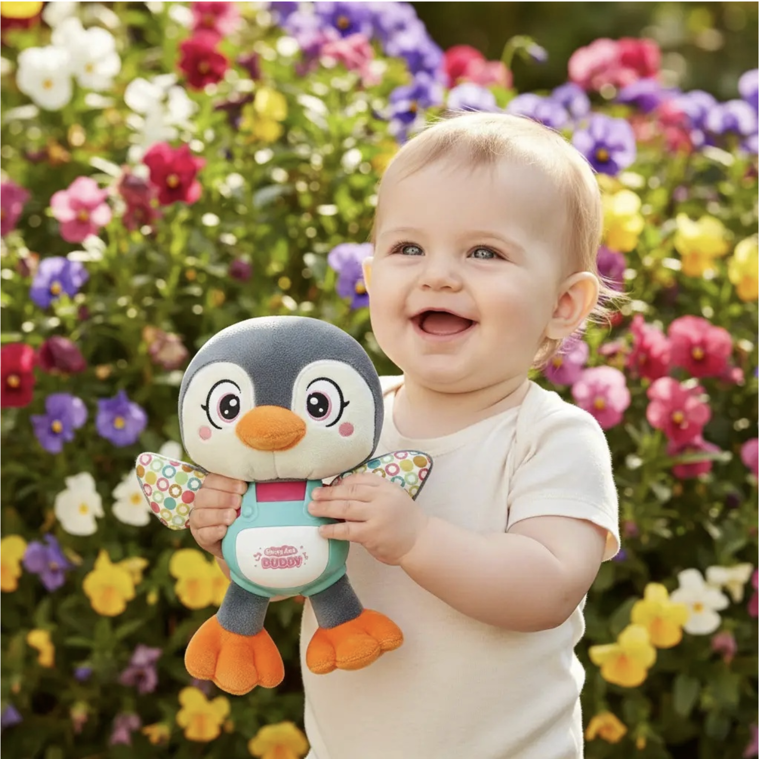 Jucaria interactiva din plus Pinguin este conceputa pentru a oferi bebelusilor confort, liniste si o atmosfera relaxanta inainte de somn. Materialul moale, lumina ambientala delicata, melodiile linistitoare si efectul de respiratie simulata contribuie la calmarea copilului si la crearea unei rutine de somn mai placute. Designul prietenos si textura placuta transforma pinguinul intr-un companion reconfortant, potrivit atat pentru somn, cat si pentru momentele de linistire si joaca usoara.