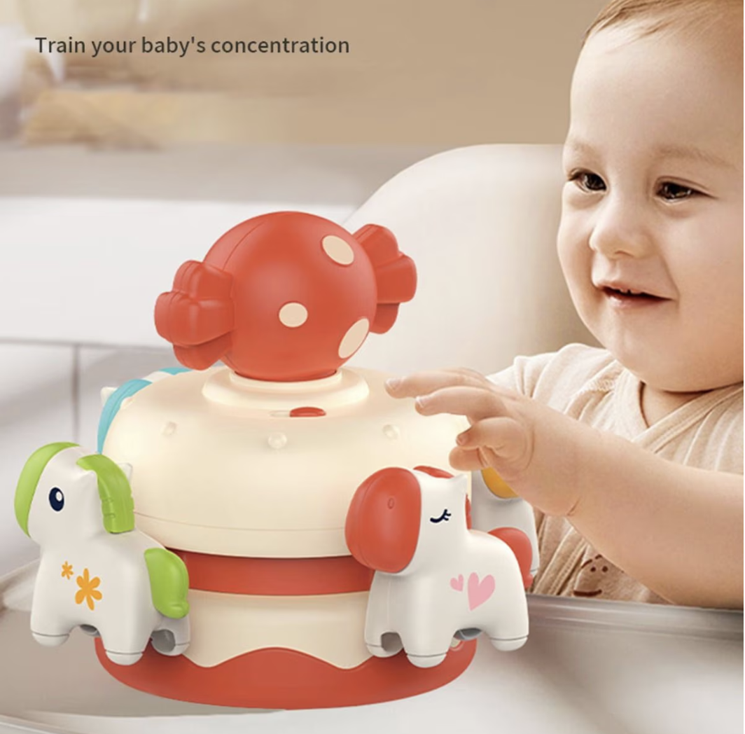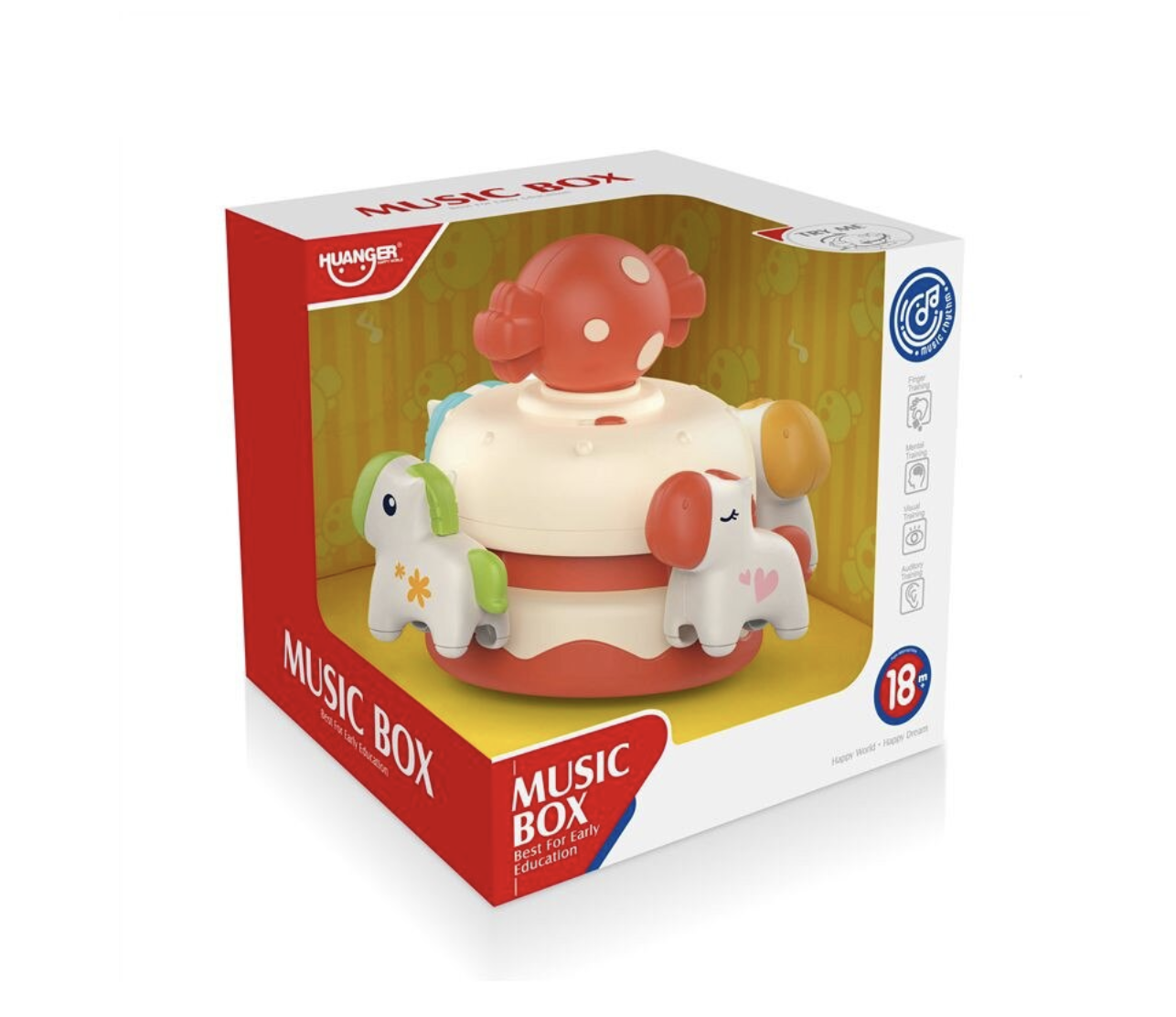 O jucarie educativa si distractiva, perfecta pentru cei mici! Carousel Music Box este conceputa special pentru copiii cu varsta intre 6 luni si 5 ani, fiind o alegere ideala pentru stimularea dezvoltarii motorii, coordonarii si creativitatii. Designul sau unic, forma neregulata si culorile atractive transforma orice moment de joaca intr-o experienta educativa placuta, atat in casa, cat si in aer liber.